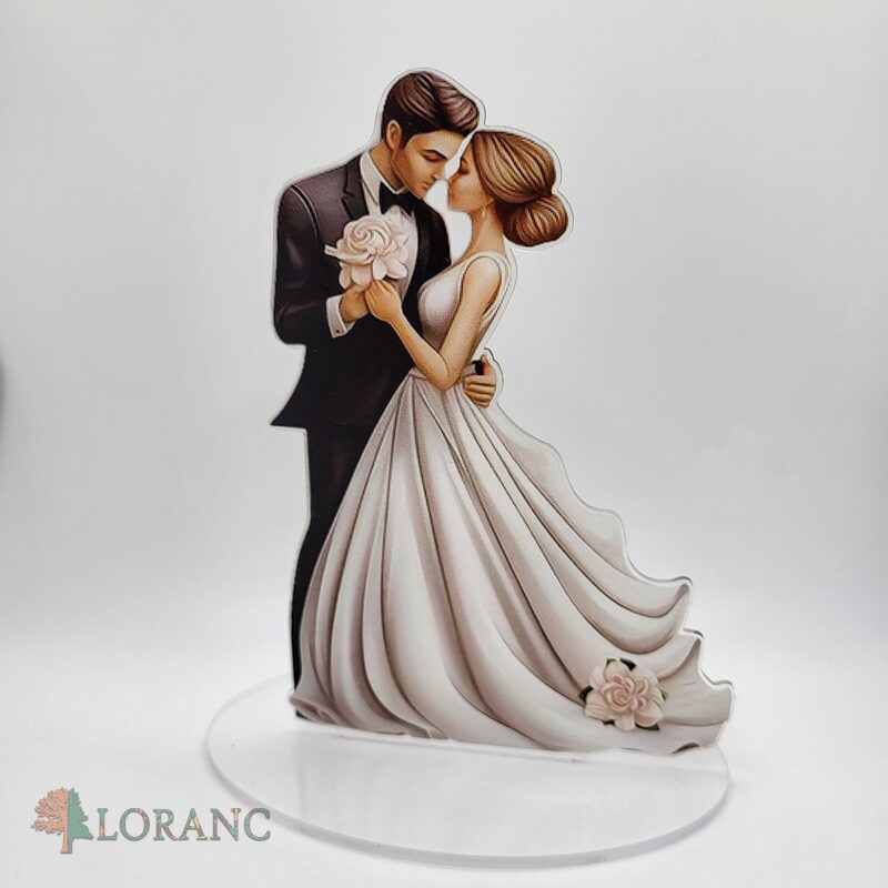 Elegantná akrylová stojaca dekorácia so svadobným párom je nádherným doplnkom na svadobnú tortu, sweet bar alebo svadobný stôl. Jemný romantický motív nevesty a ženícha symbolizuje lásku, spojenie a výnimočný deň dvoch ľudí.