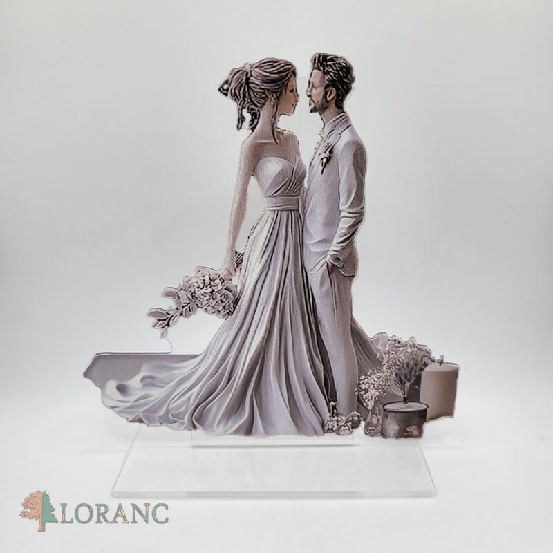 Akrylová stojaca dekorácia – Svadobný pár | Elegantná ozdoba aj na svadobnú tortu