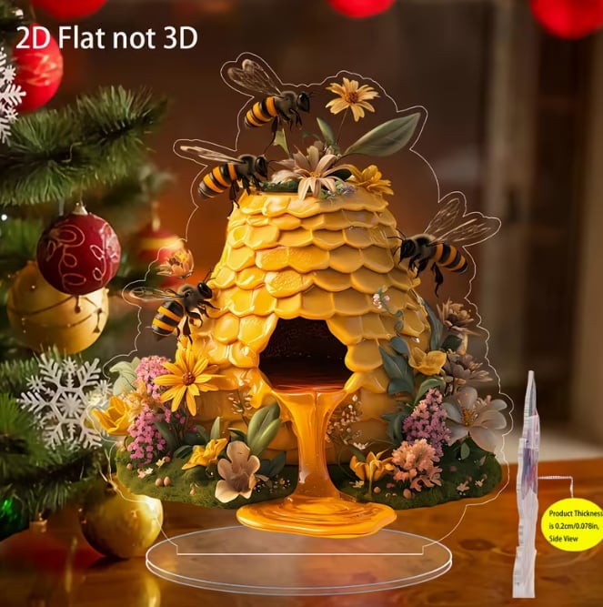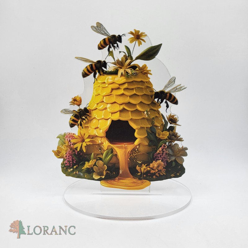 Akrylová stojaca dekorácia – Včela + medový plát 04 /úľ/