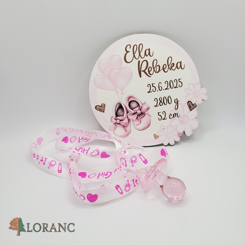 Akrylový cumlík/cumeľ na šnúrke – It´s a Girl