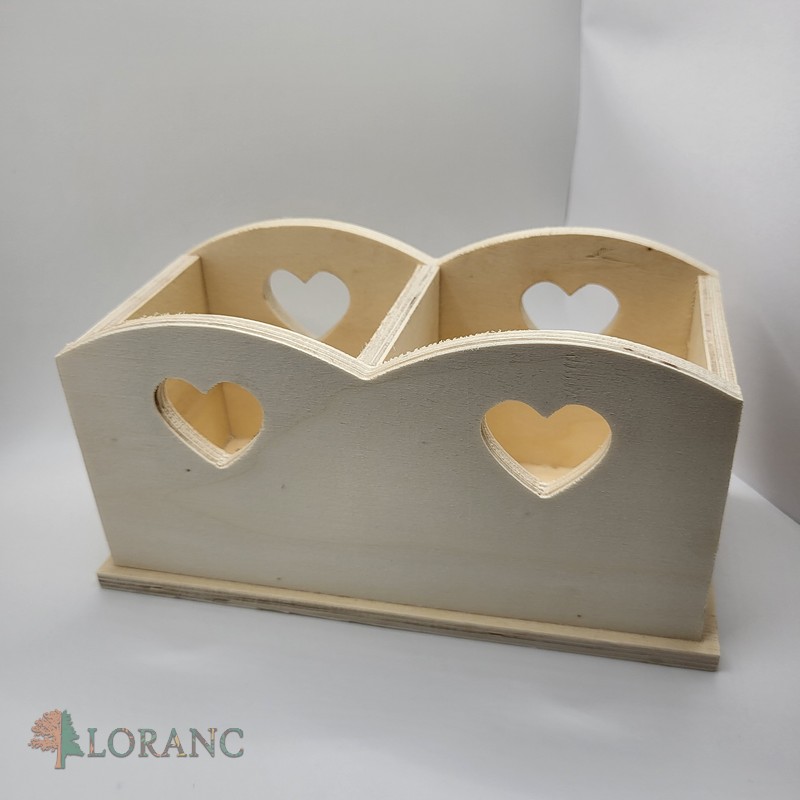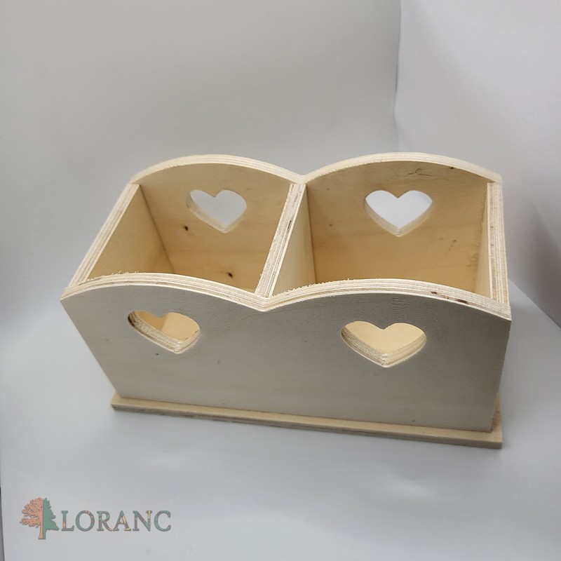 Roztomilý dvojitý box na perá – farbičky so srdiečkom zo surového dreva