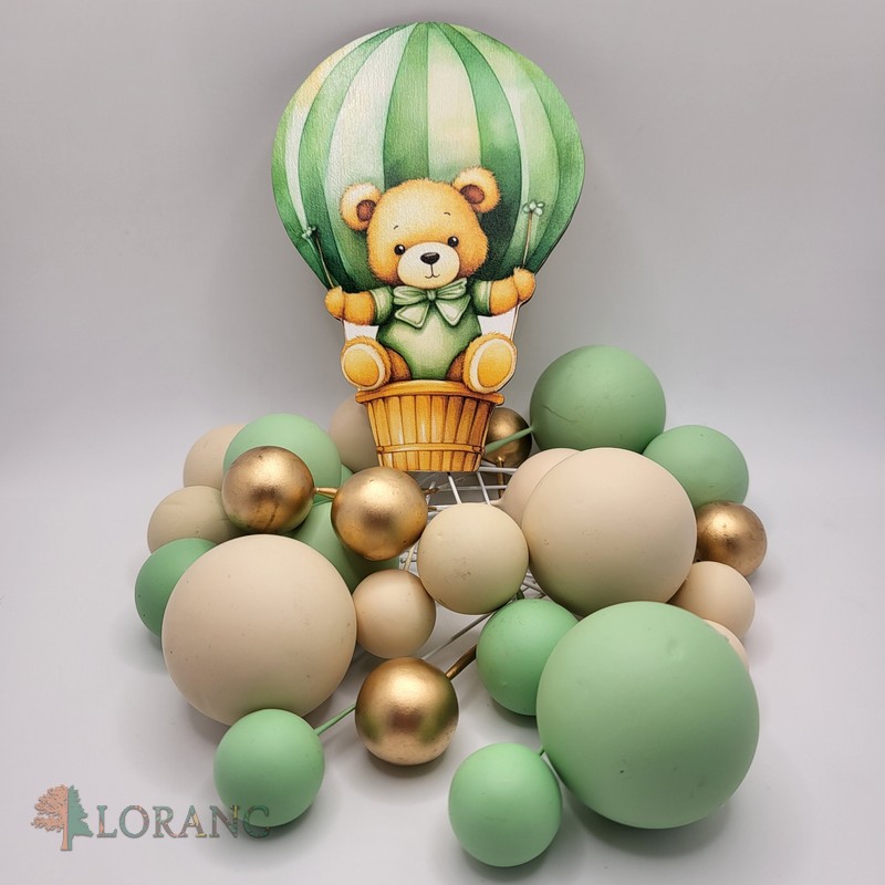 Dekorácia – Guličky/macko/béžová,zlatá,zelená/ SADA 44