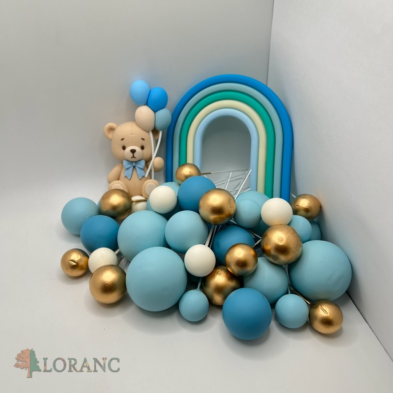 Dekorácia – Guličky + macko + dúha SADA 179 /modrá/