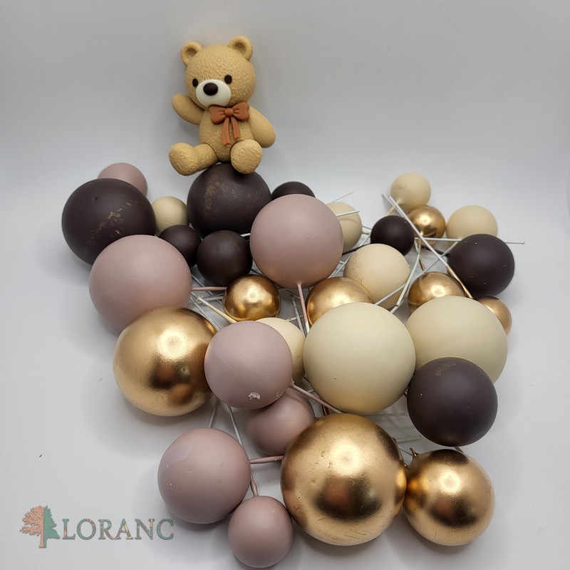 Dekorácia na tortu – 32 ks guličiek + 1 ks macko