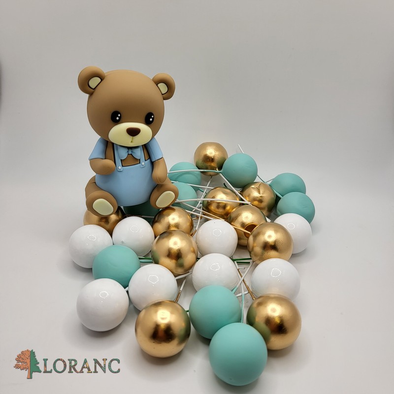 Dekorácia na tortu – 30 ks guličiek + 1 ks macko