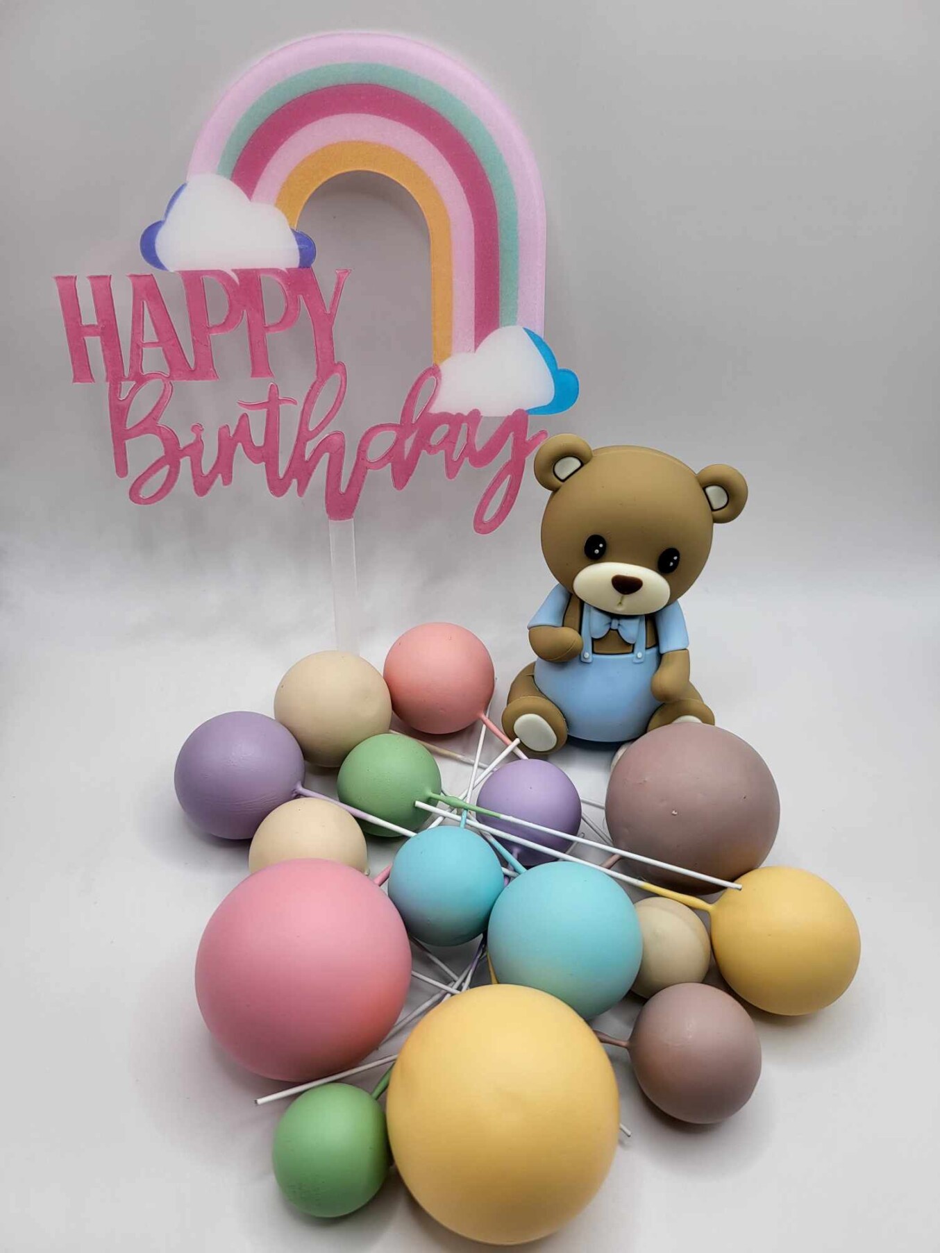 Dekorácia na tortu – 15 ks guličiek + 1 ks macko