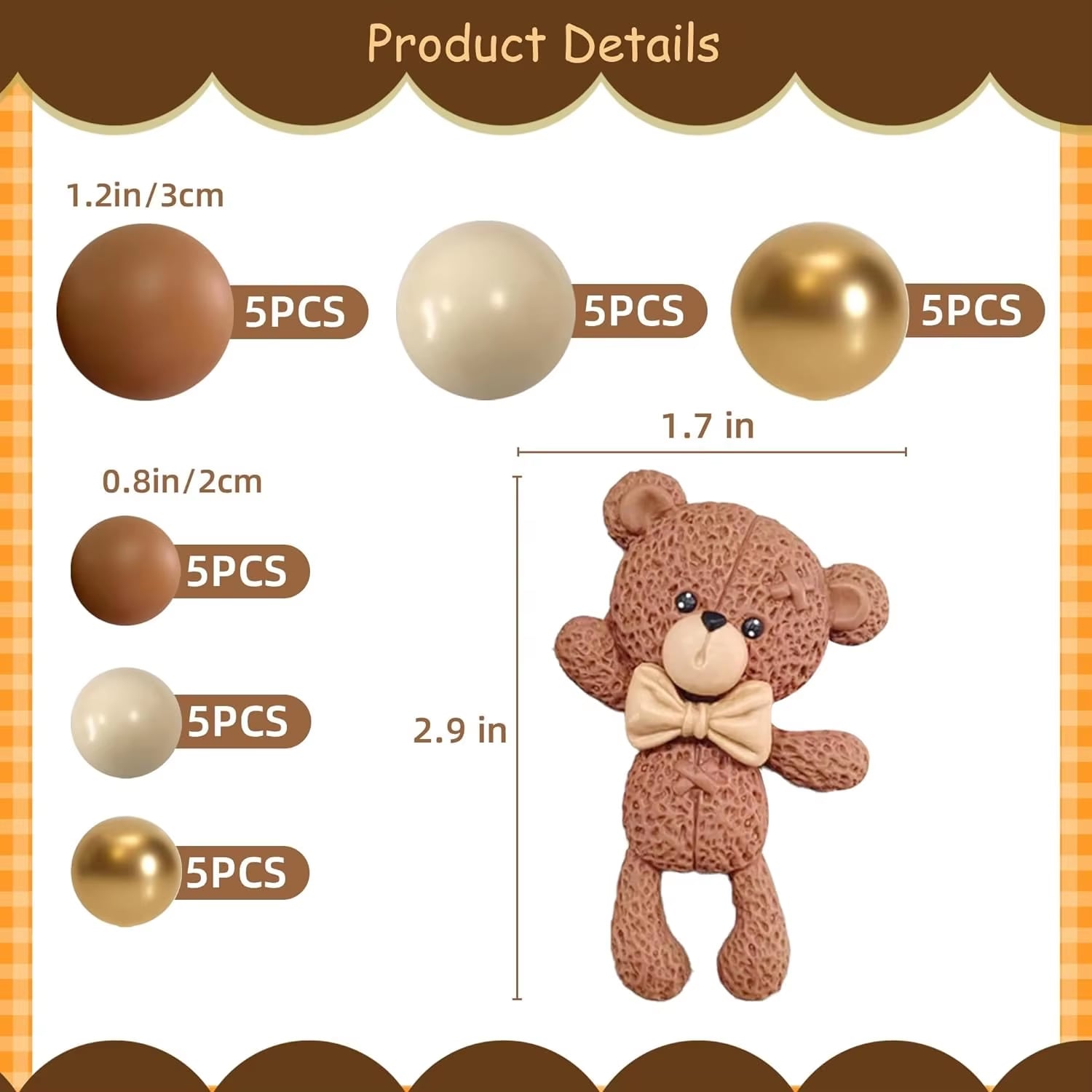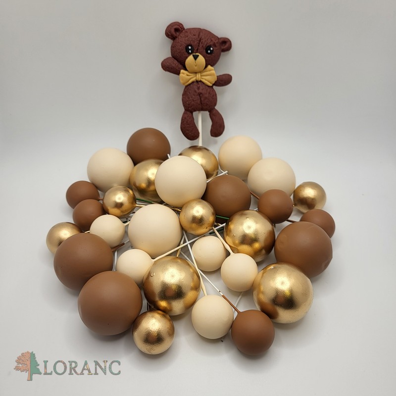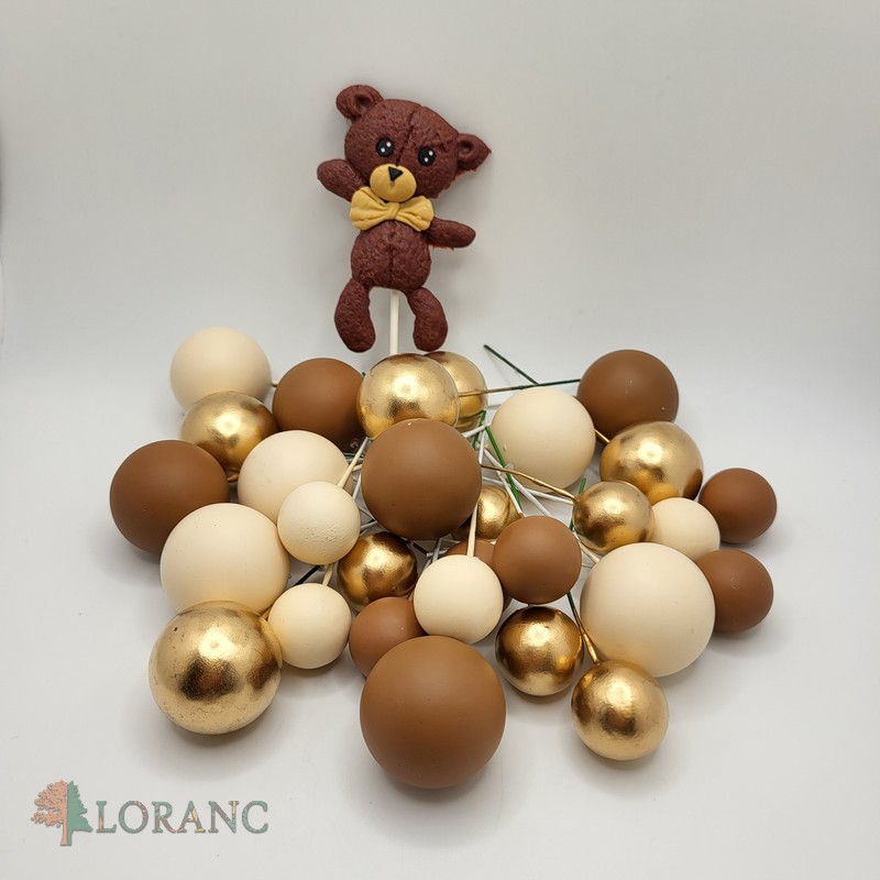 Dekorácia na tortu – Guličky v 2 veľkostiach – 30 ks/ 1 balenie + medvedík