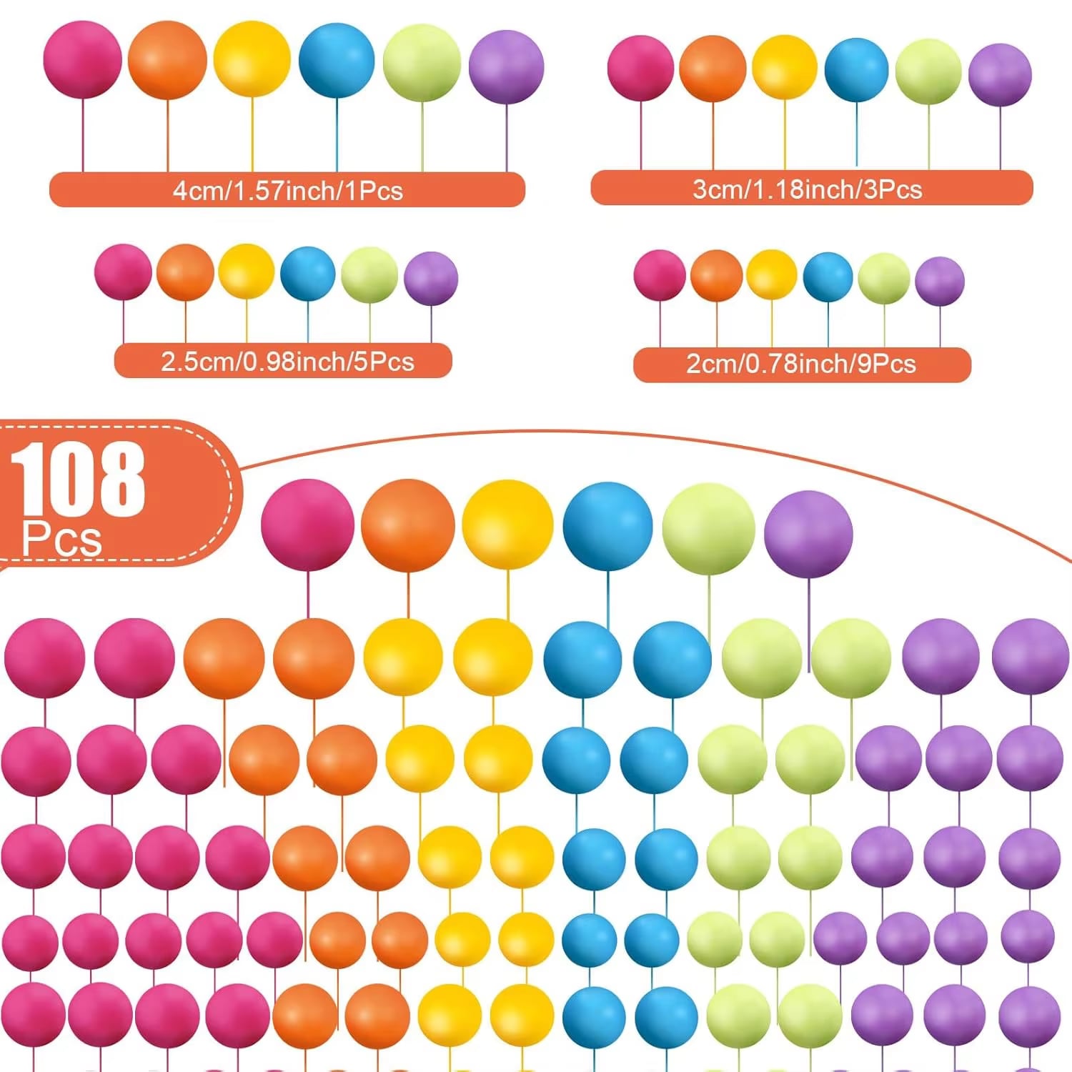 Dekorácia na tortu – Guličky v 4 veľkostiach – 108 ks/ 1 balenie