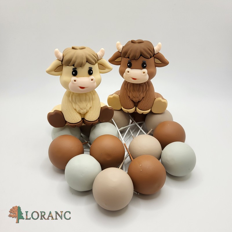 Dekorácia na tortu – 15 ks guličiek + 2 ks krava