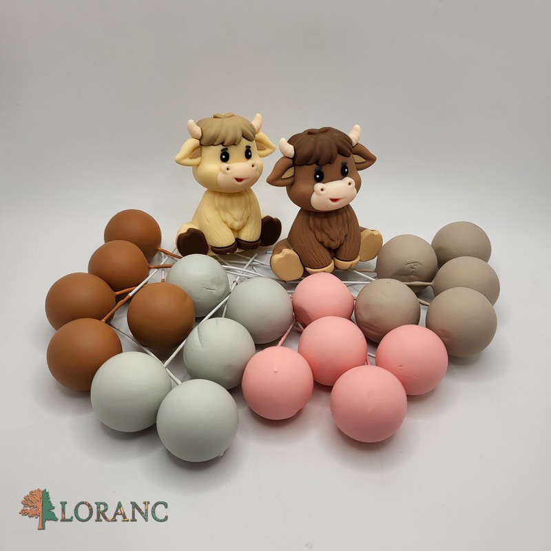 Dekorácia na tortu – 20 ks guličiek + 2 ks krava