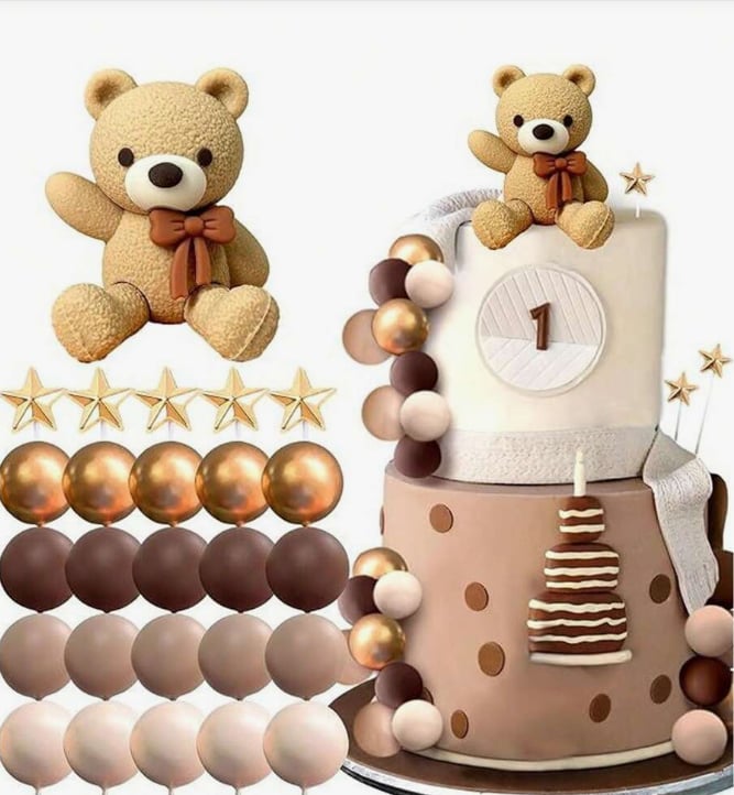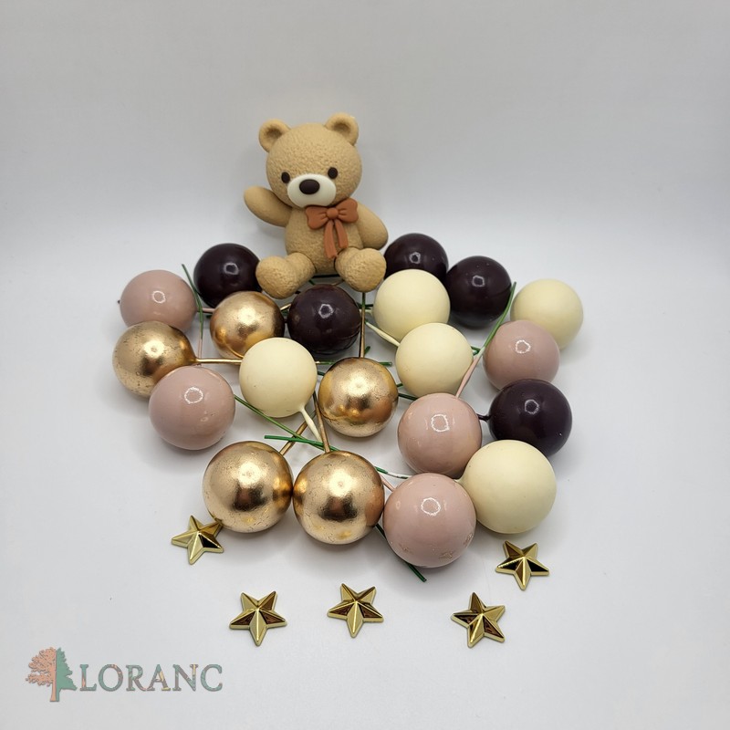 Dekorácia na tortu – 20 ks guličiek + 1 ks macko + 5 ks hviezdičiek