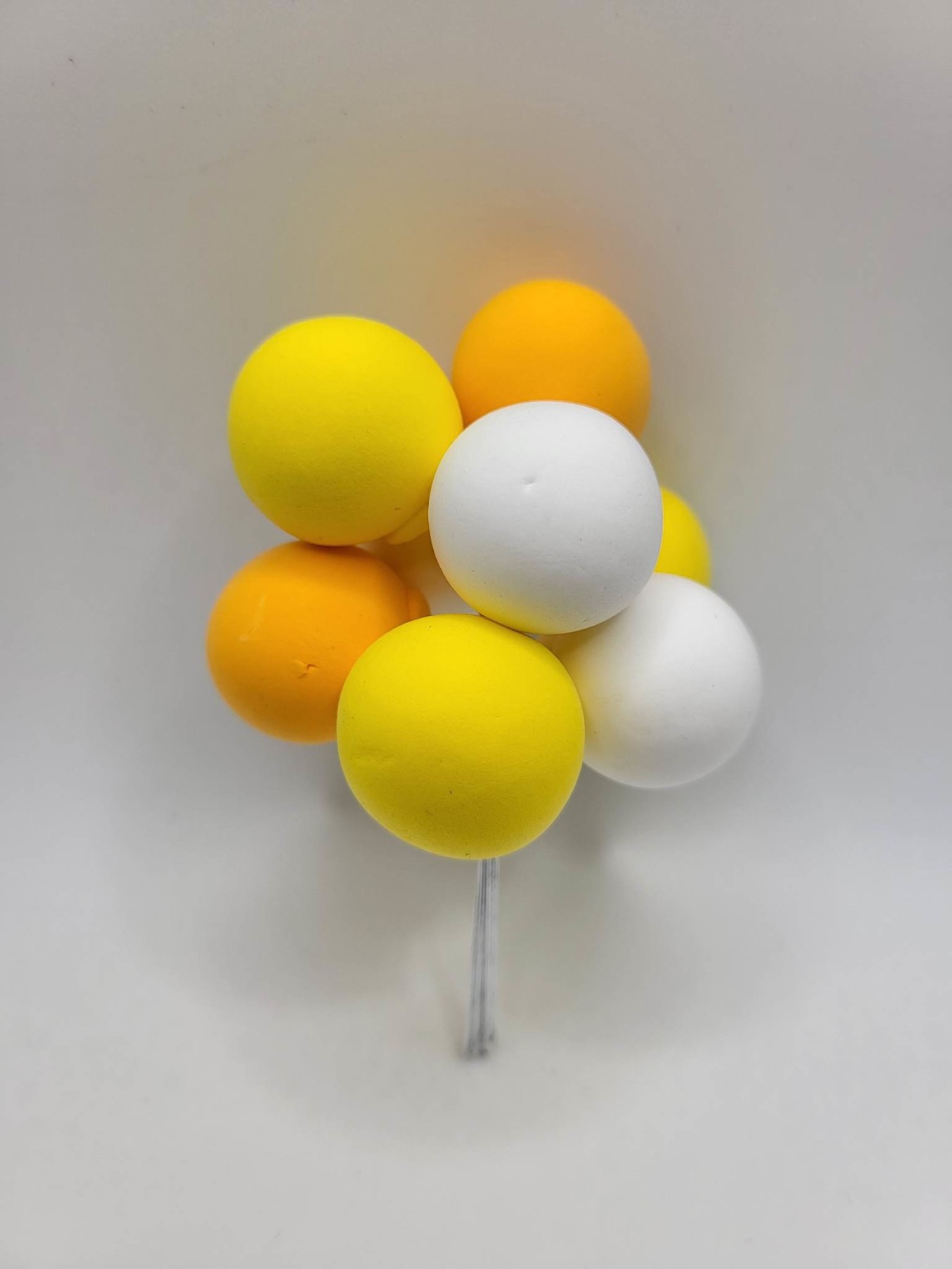 Polystyrénové balóniky v žlto-bielej farebnej kombinácii sú originálnou dekoráciou na tortu, ktorá okamžite pritiahne pozornosť. Vytvárajú efekt mini balónikov a dodajú torte svieži, veselý a prepracovaný vzhľad. Ideálne na narodeniny, detské oslavy, krstiny či letné párty. Balónikový zväzok je pripravený ako zápich, takže ho stačí len umiestniť do torty – bez akejkoľvek ďalšej úpravy.