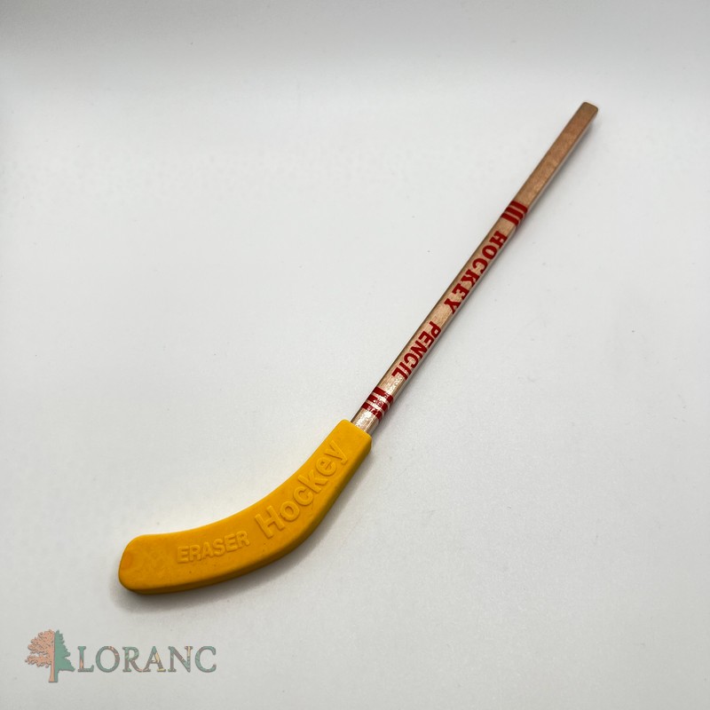 Spodná časť hokejky je guma, ktorú viete zložiť a máte obyčajnú ceruzku aj s gumou na gumovanie.
