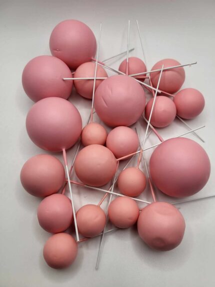 Guľôčky sú pevné, ľahké a upevnené na drôtikoch, čo umožňuje jednoduché tvarovanie a aranžovanie. Stačí ich zapichnúť do torty a vytvoriť tak krásnu 3D dekoráciu vhodnú na narodeniny, krstiny, oslavu 1. narodenín či dievčenské párty.