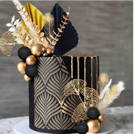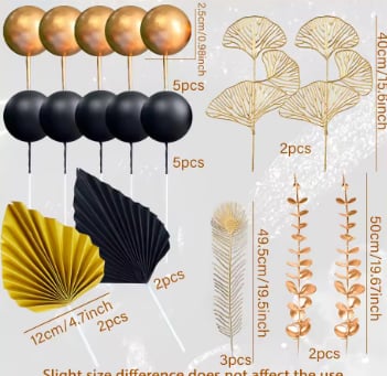 Dekorácia na tortu – Guličky SADA 174 /zlatá,čierna,ginko list/