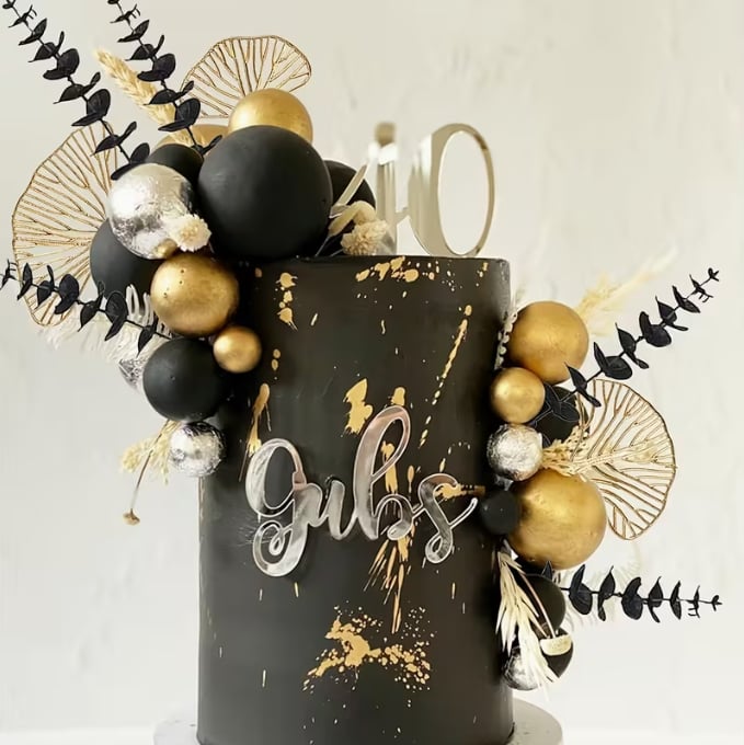 Dekorácia na tortu – Guličky SADA 175 /zlatá,čierna,ginko list/