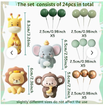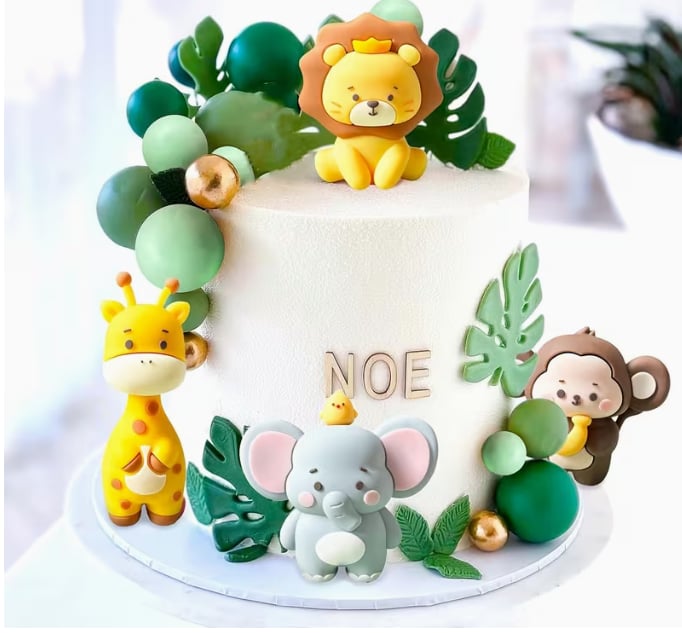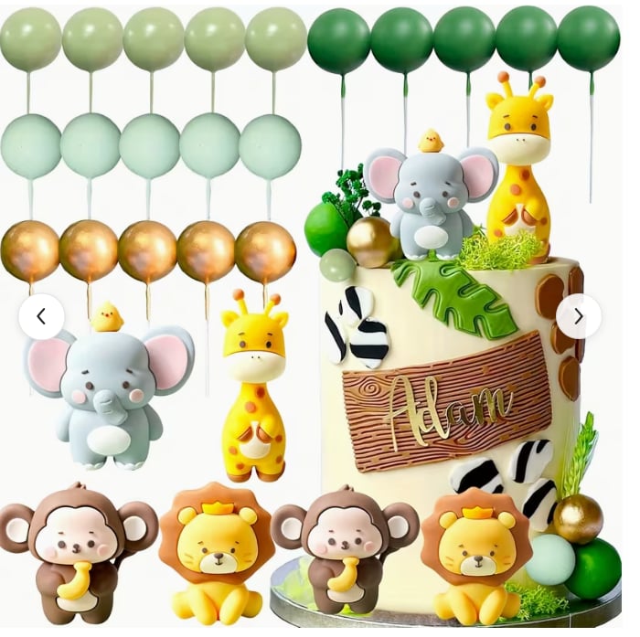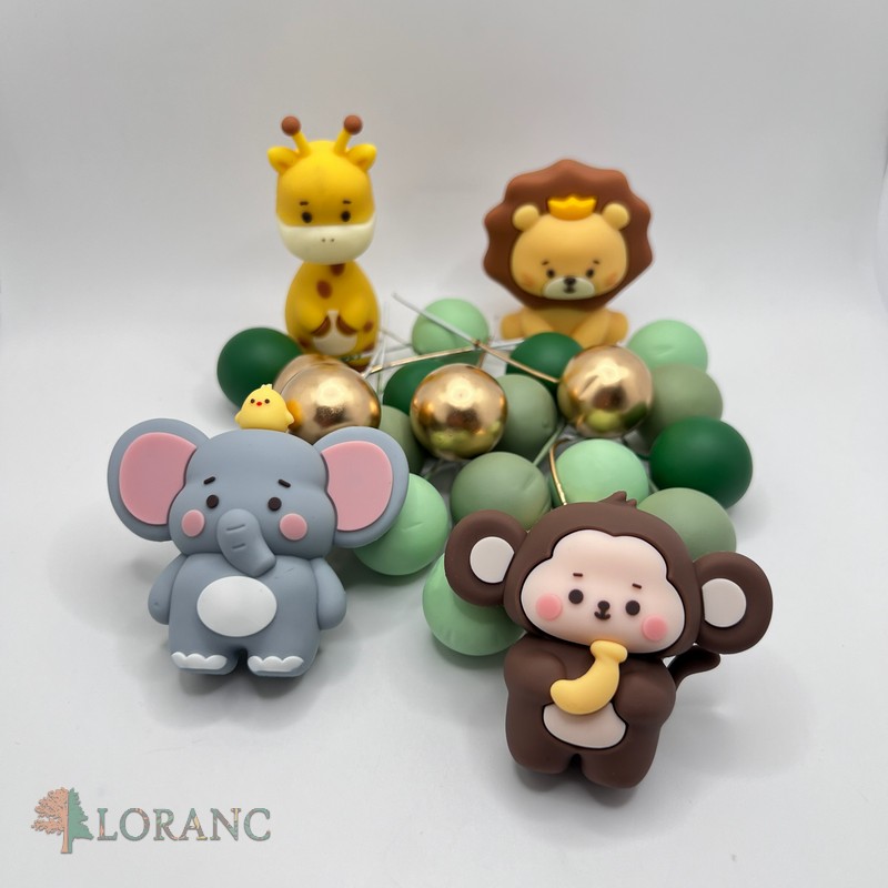 dekorácia na tortu – Guličky SADA 70 /slon,žirafa,lev,opica/
