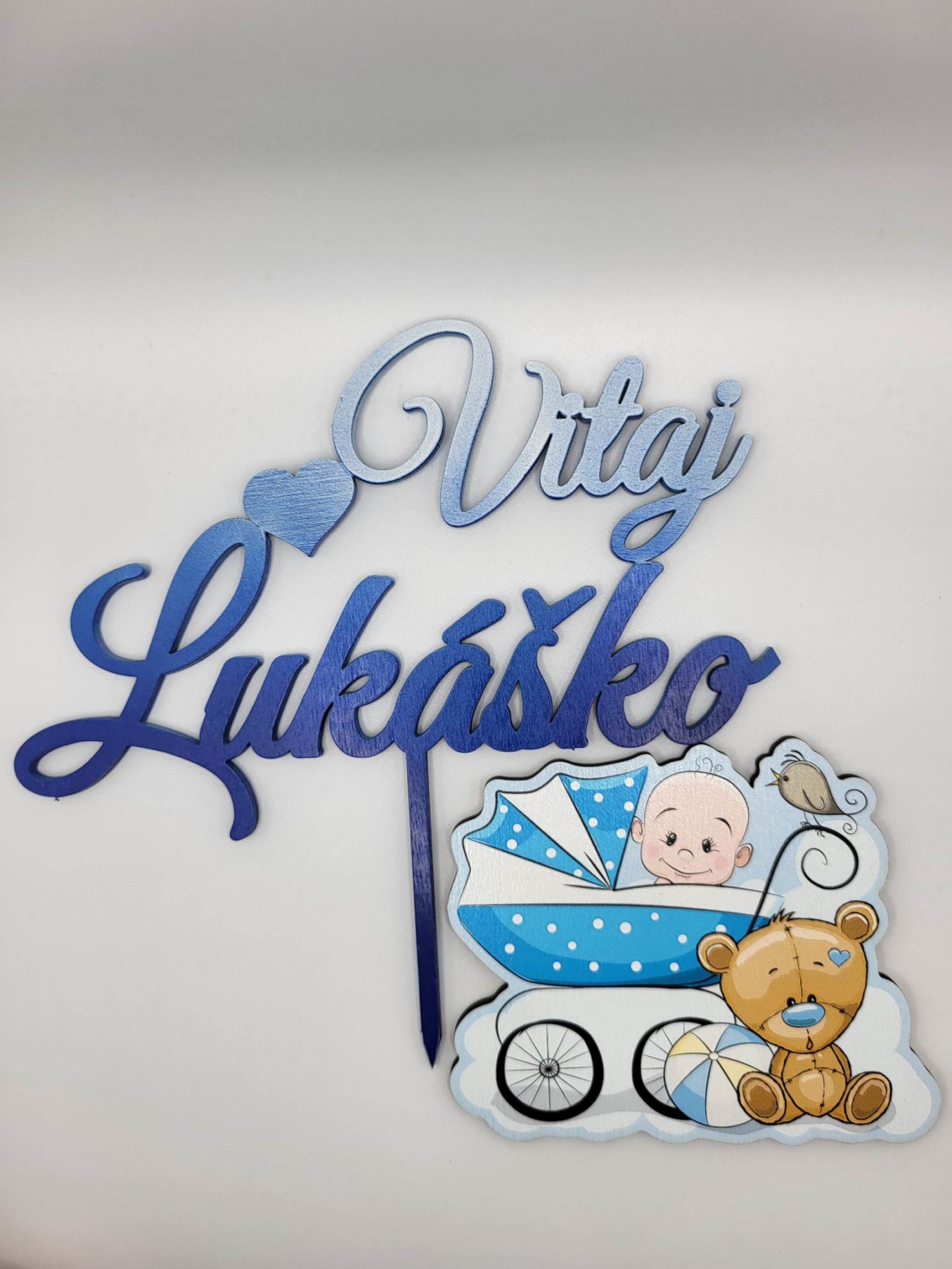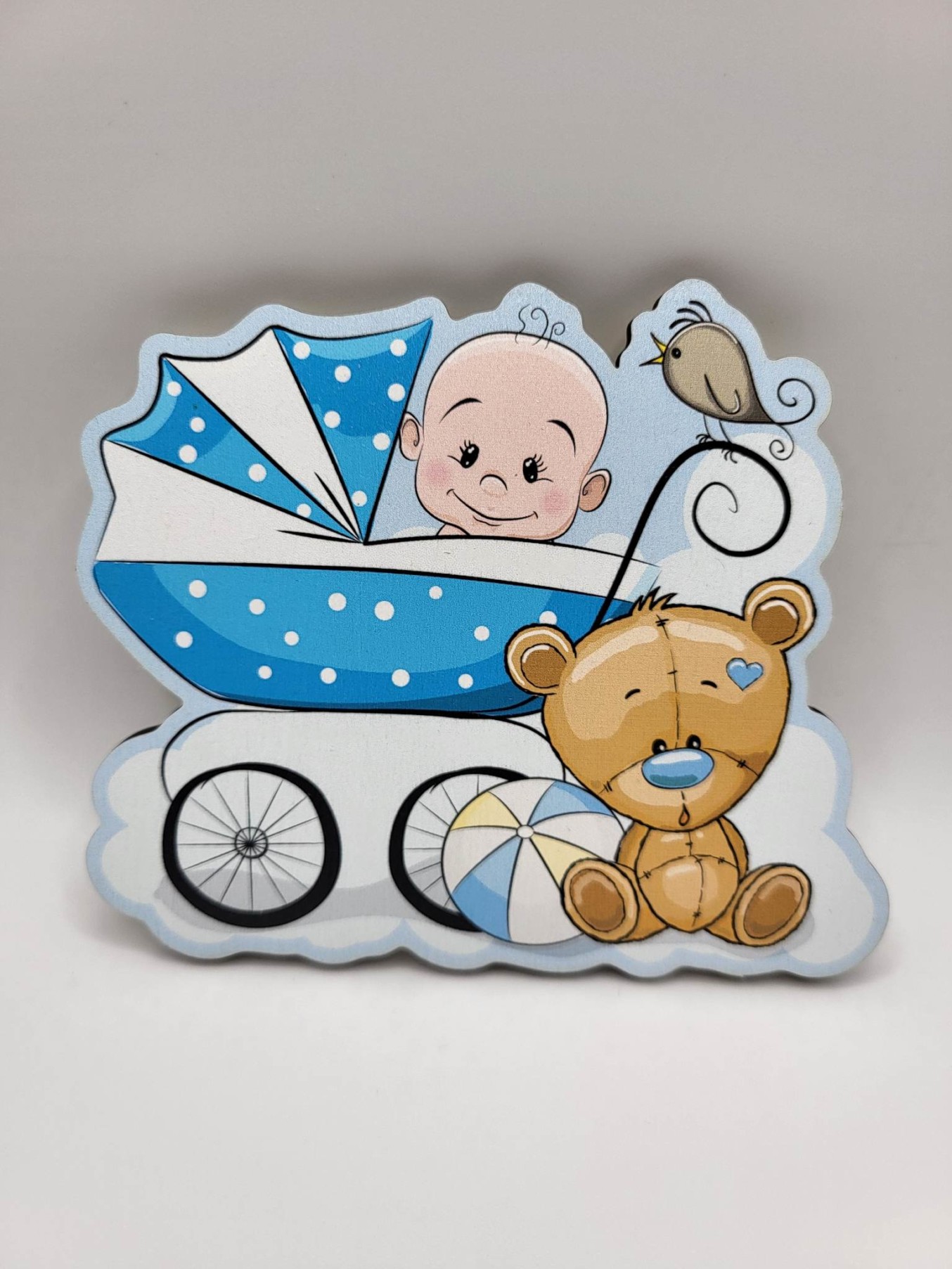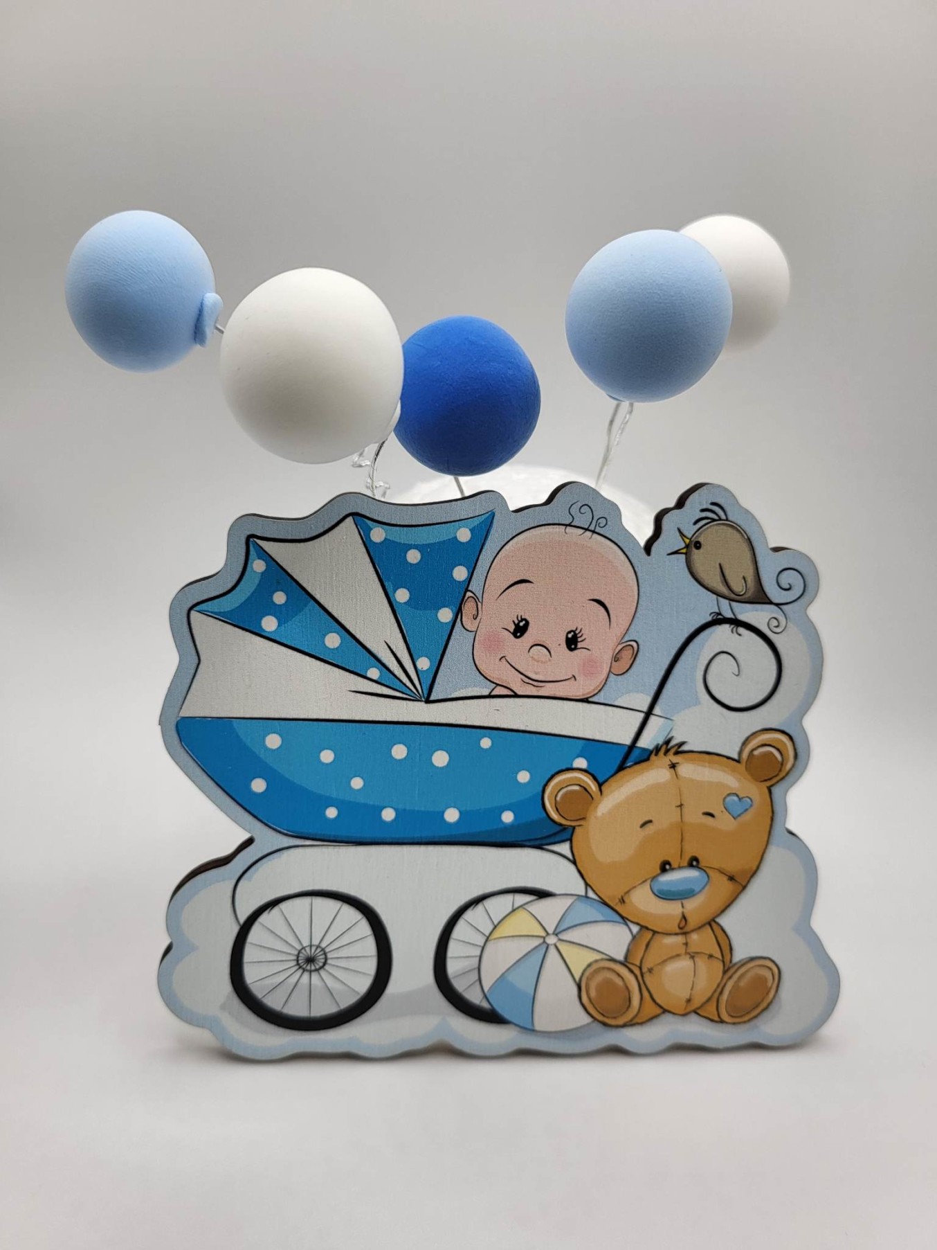 Dekorácia na tortu/magnetka Bábätko – Chlapček v kočíku + macko