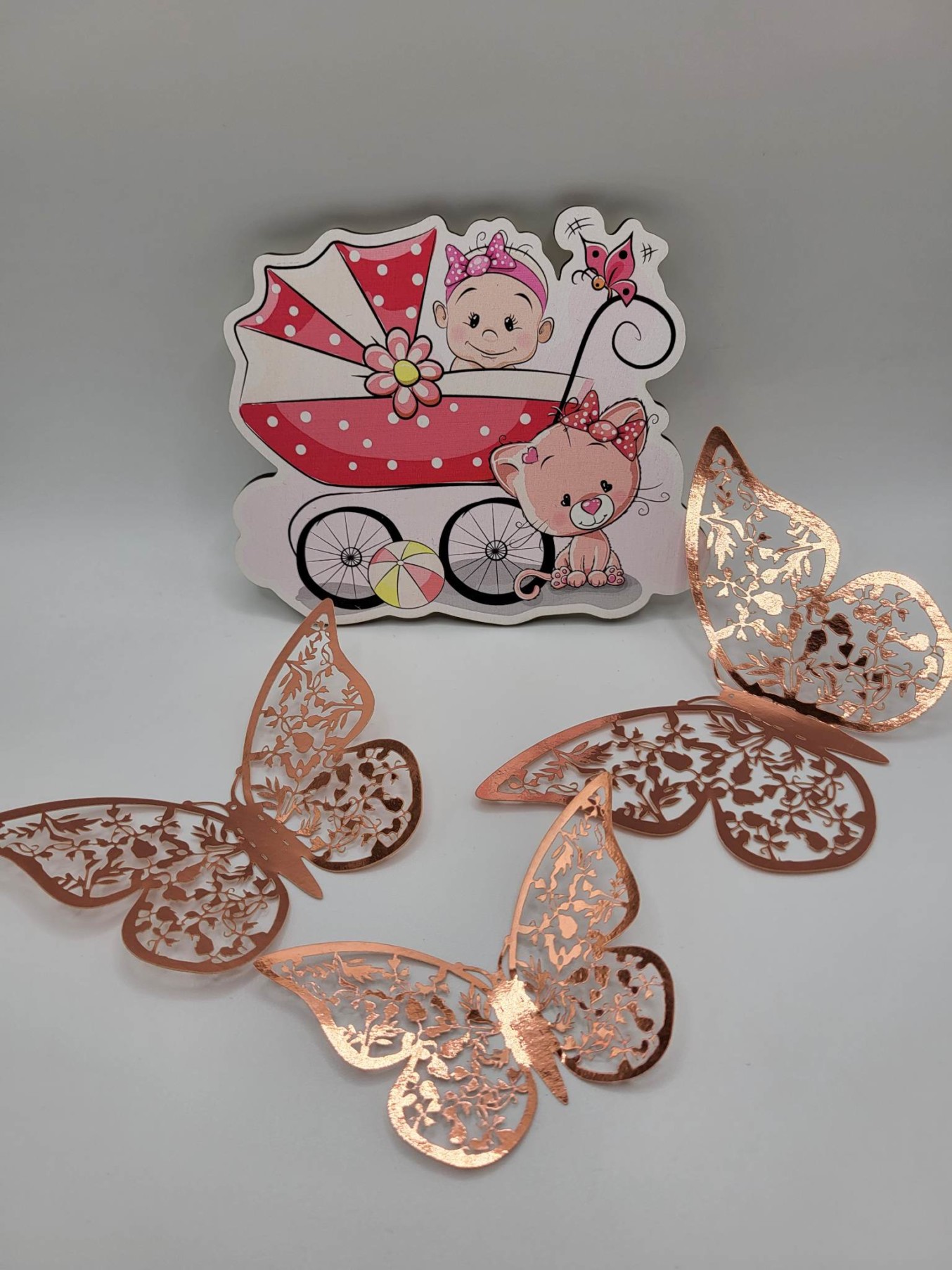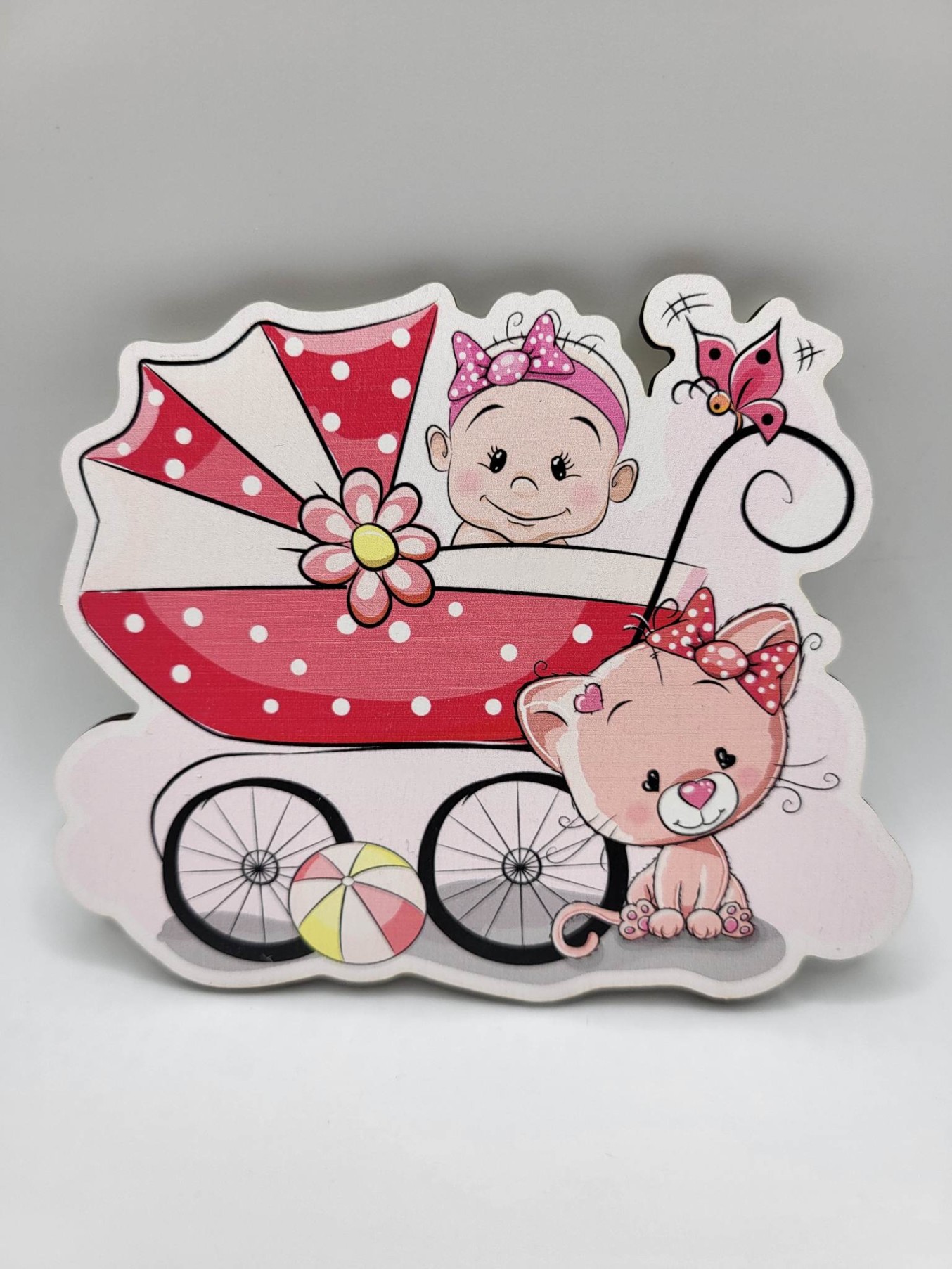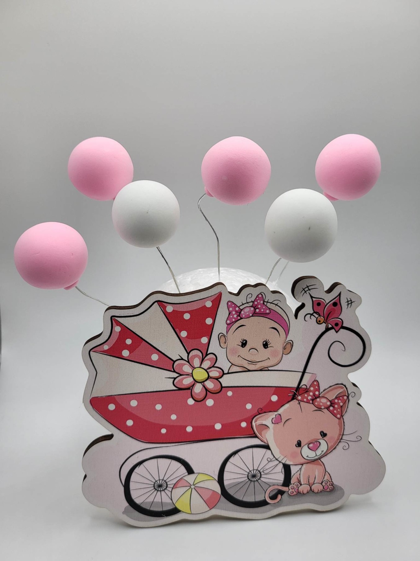 Dekorácia na tortu/magnetka Bábätko – dievčatko v kočíku 02