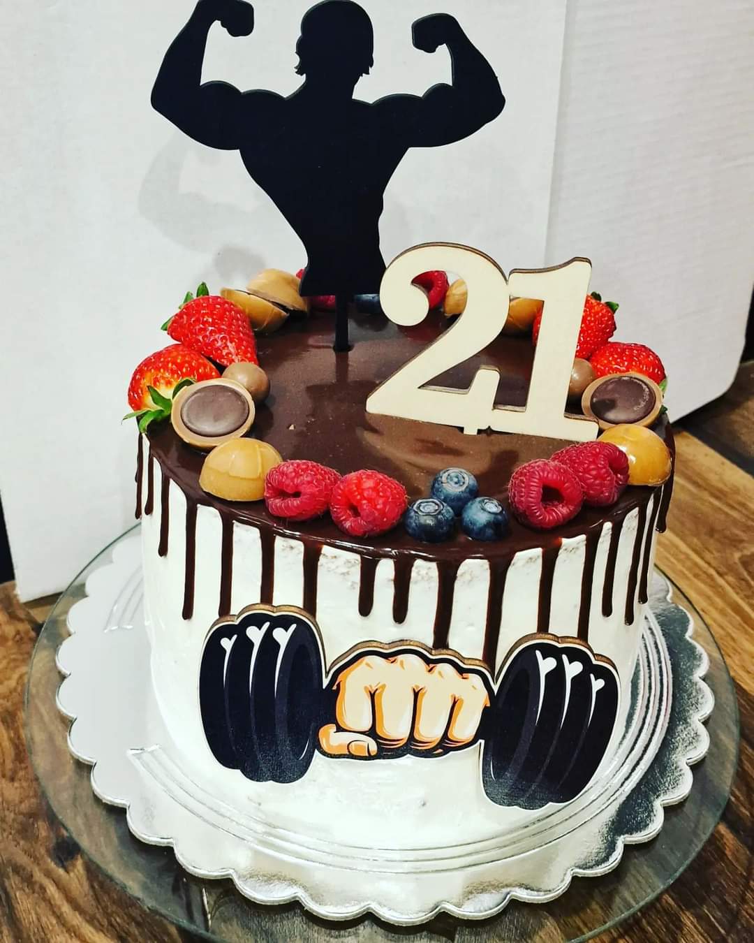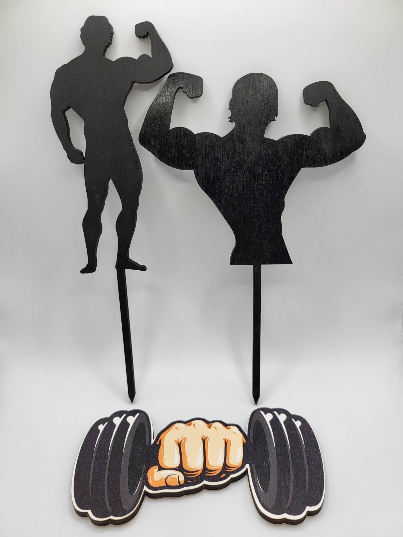 Dekorácia na tortu/magnetka -Fitnes -činka v ruke 01