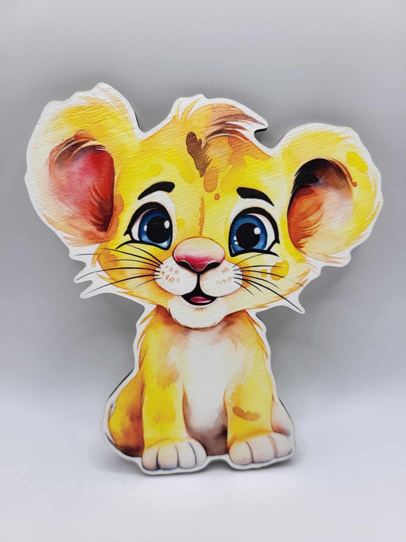 Drevená magnetka Levík je milá detská dekorácia na tortu. Vhodná na čelo torty alebo ako zápich na tortu – stačí dozadu nalepiť špajdľu.