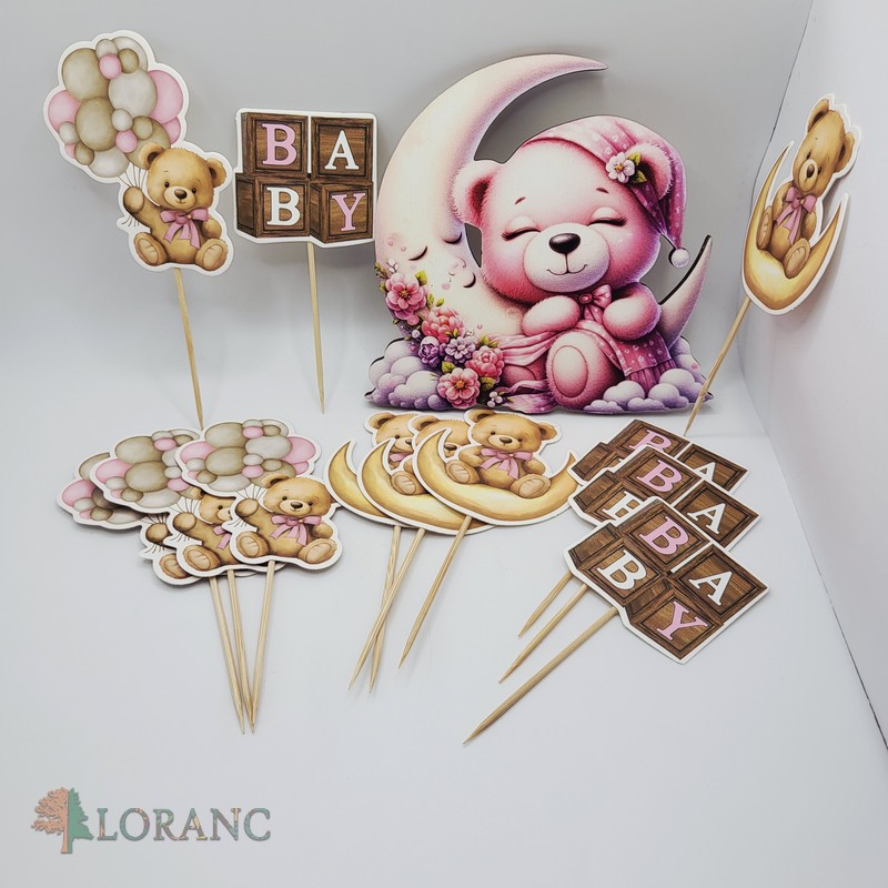 Dekorácia na tortu/magnetka Macko na mesiačiku 04