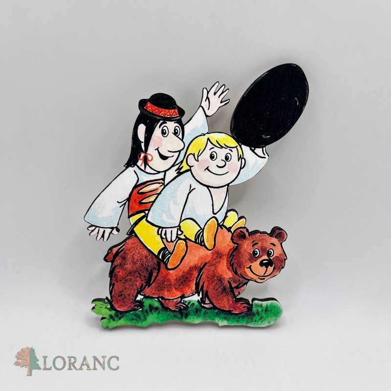 Originálna drevená magnetka s motívom z rozprávky Maťko a Kubko poteší malých aj veľkých fanúšikov tejto obľúbenej klasiky. Je ideálna ako dekorácia na tortu, na čelo torty, pričom po jednoduchom nalepení špajgle zo zadnej strany ju môžete použiť aj ako zápich na tortu.
