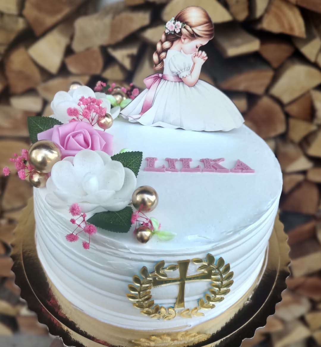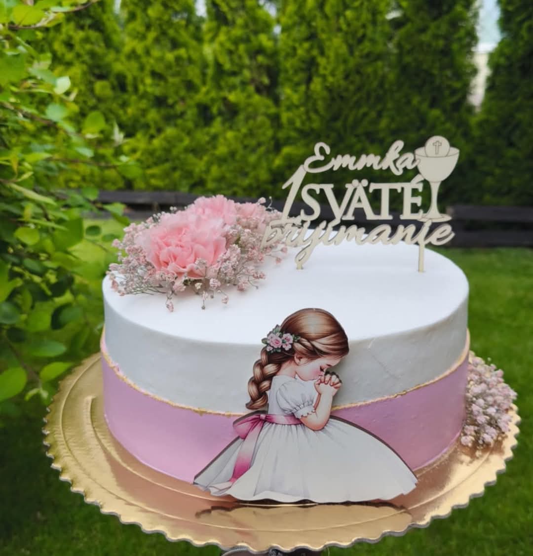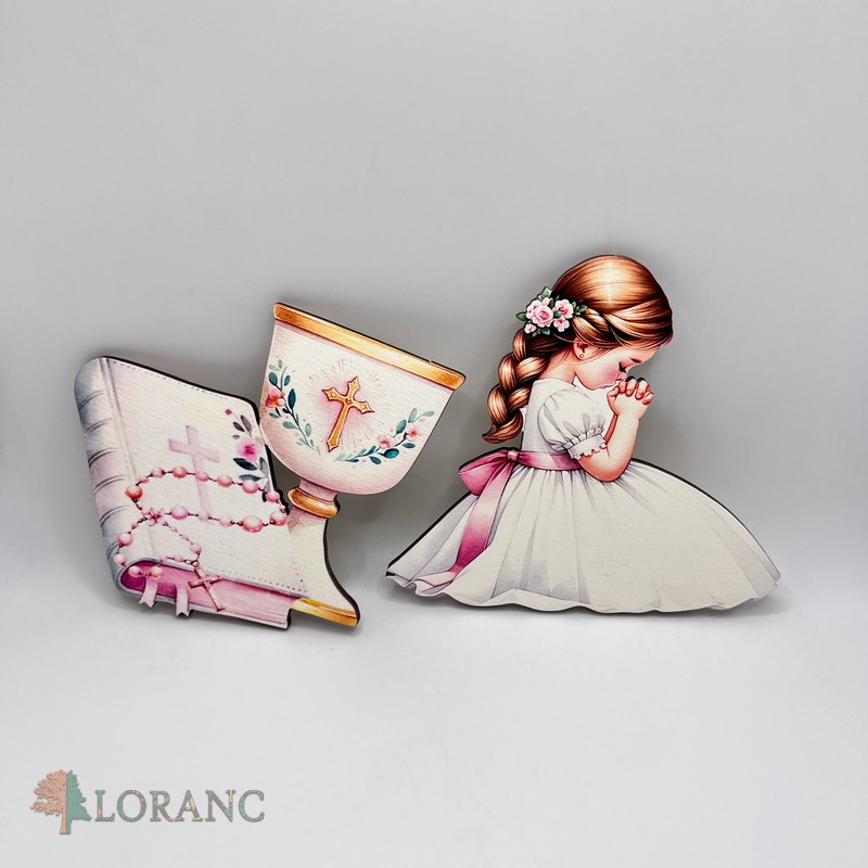 Kľúčové slová: drevená magnetka, modliace sa dievčatko, zápich na tortu, dekorácia na tortu, dekorácia na čelo torty, prvé sväté prijímanie, birmovka, konfirmácia, kresťanský darček, darček pre dievča, kalich, biblia, ruženec