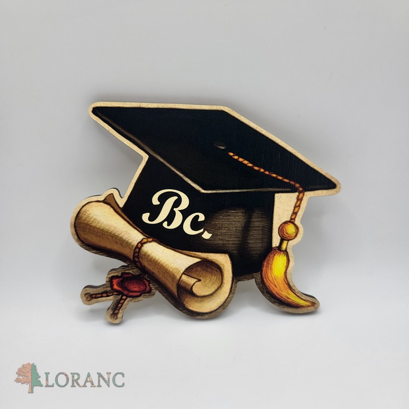 Magnetka je vyrobená z kvalitného dreva a detailne spracovaná, čo jej dodáva luxusný a zároveň prirodzený vzhľad. Hodí sa ako dekorácia na chladničku, milý darček pre absolventa alebo štýlový doplnok na oslavu promócie.