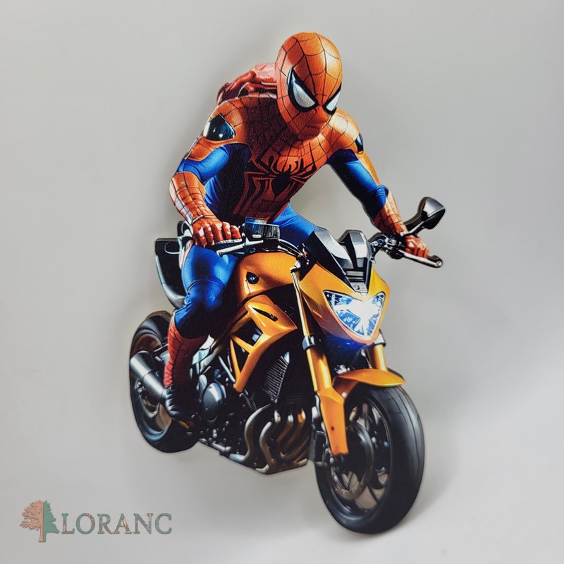 Drevená magnetka – Spider-Man na motorke je dynamická a výrazná dekorácia vyrobená z kvalitnej topoľovej preglejky. Akčný motív Spider-Mana na motorke zaujme každého fanúšika superhrdinov a je ideálny na tematické detské oslavy.