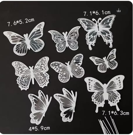 Dekorácia na tortu – motýle biele 3D/62