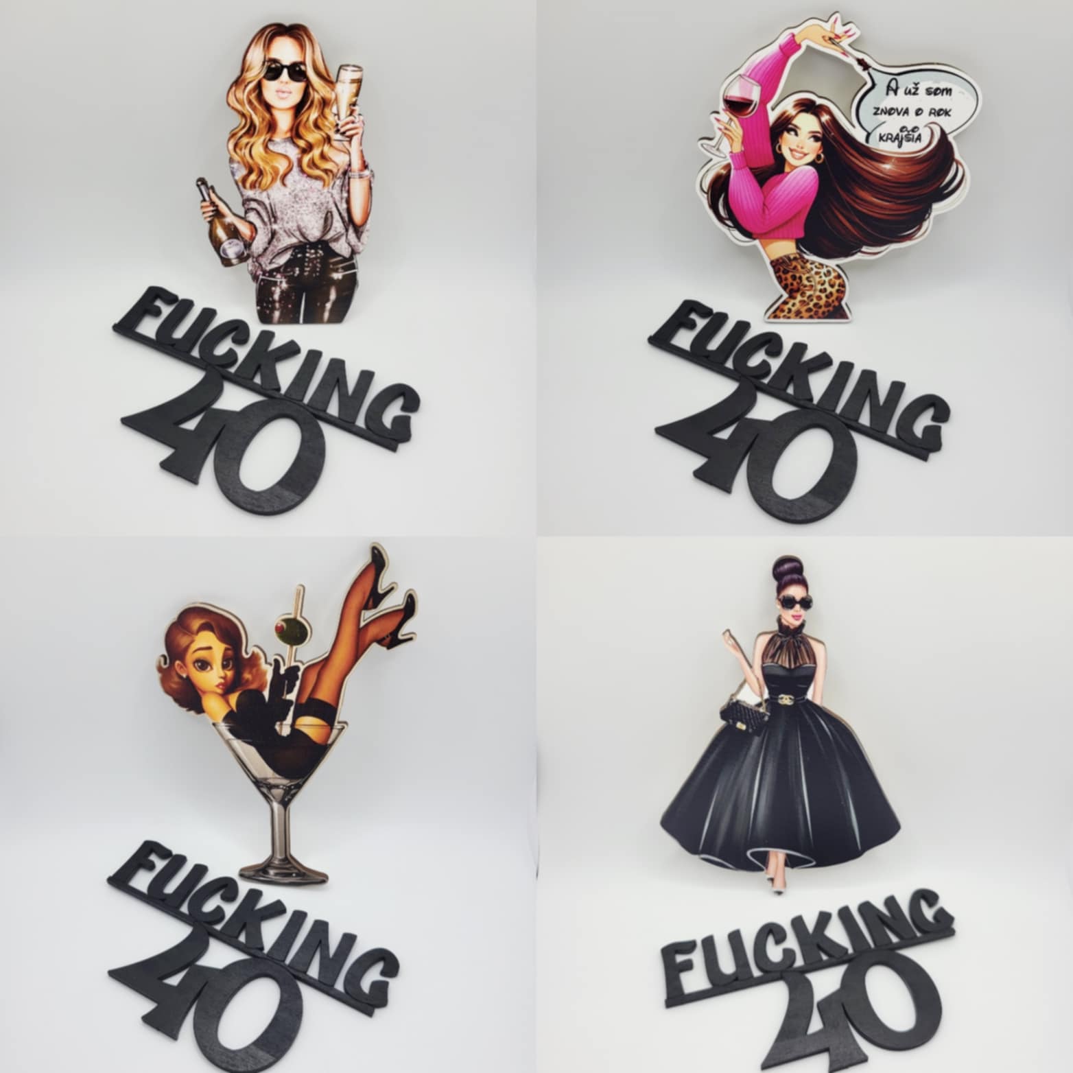 Drevený dekoračný nápis „Fucking 40“ – zápich na tortu / dekorácia