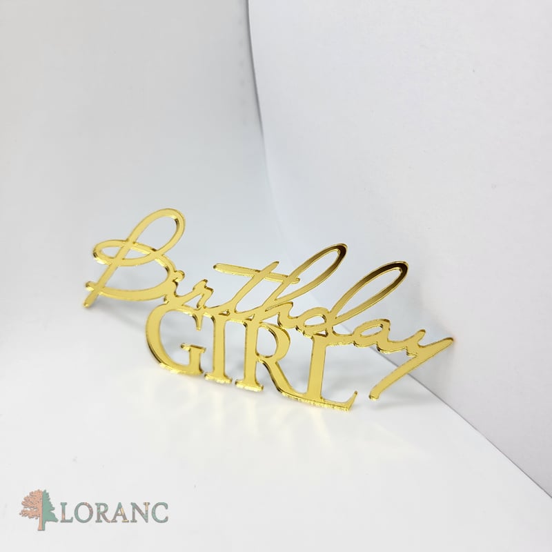 dekorácia na tortu/plastový nápis – Birthday Girl 01 /zlatá/