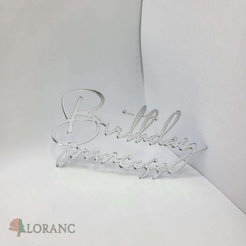 dekorácia na tortu/plastový nápis – Birthday princess 01 /strieborná/