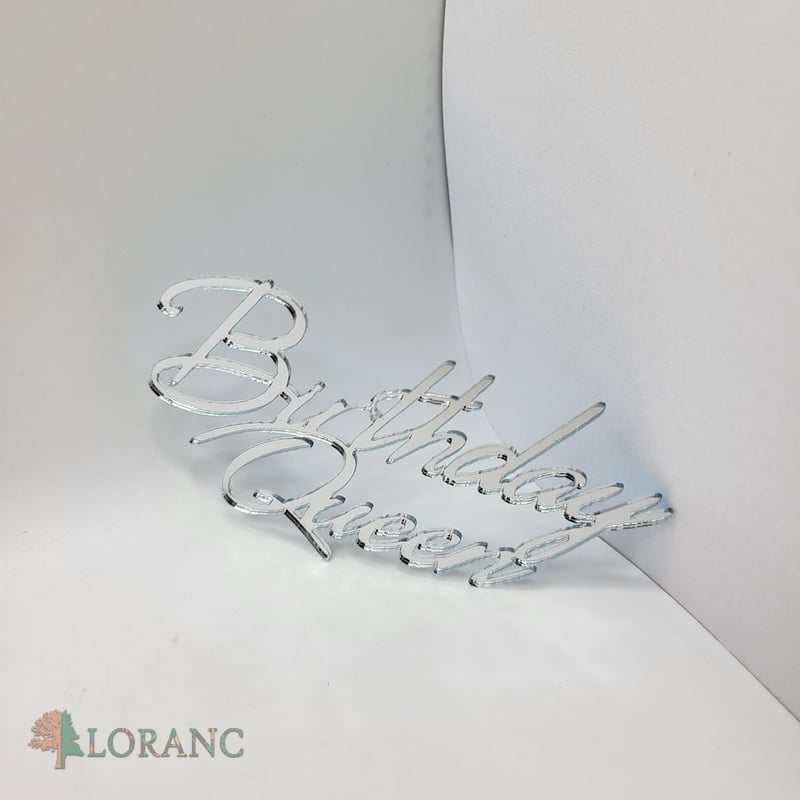 dekorácia na tortu/plastový nápis – Birthday Queen 01 /strieborná/