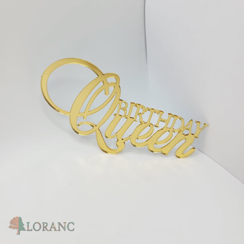 dekorácia na tortu/plastový nápis – Birthday Queen 02 /zlatá/