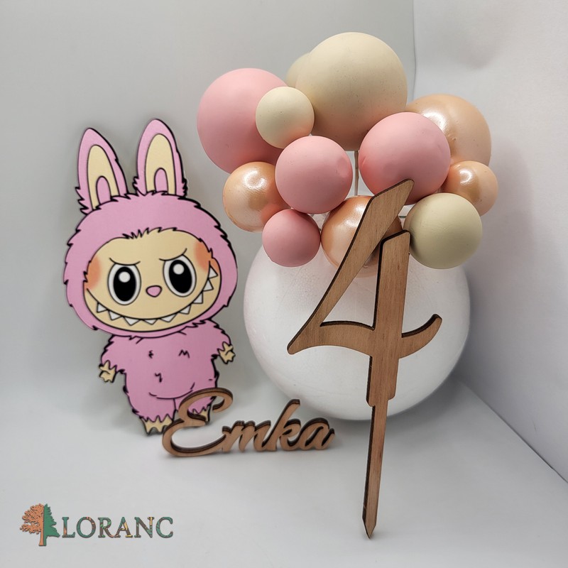 Dekorácia na tortu – Sada – Labubu /magnetka+guličky+meno+číslo/