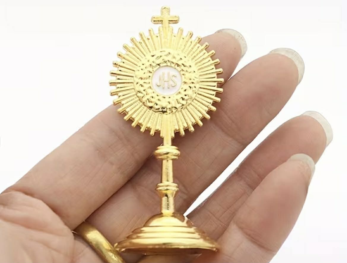 dekorácia na tortu – zlatá monštrancia /prijímanie, birmovka/
