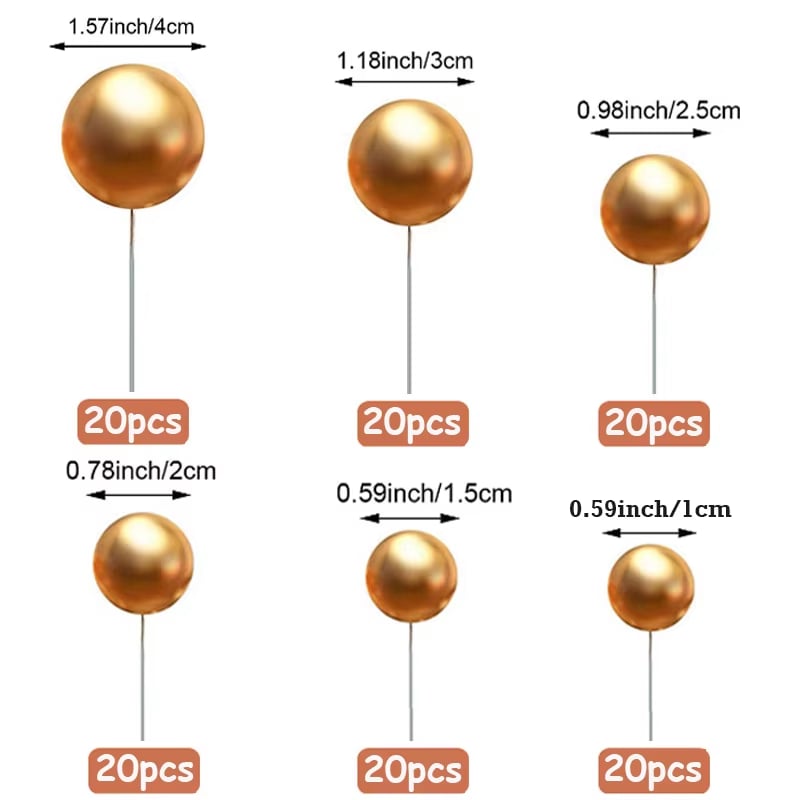 Dekorácia na tortu – Guličky v 6 veľkostiach 6 x 20 = 120 ks/balenie