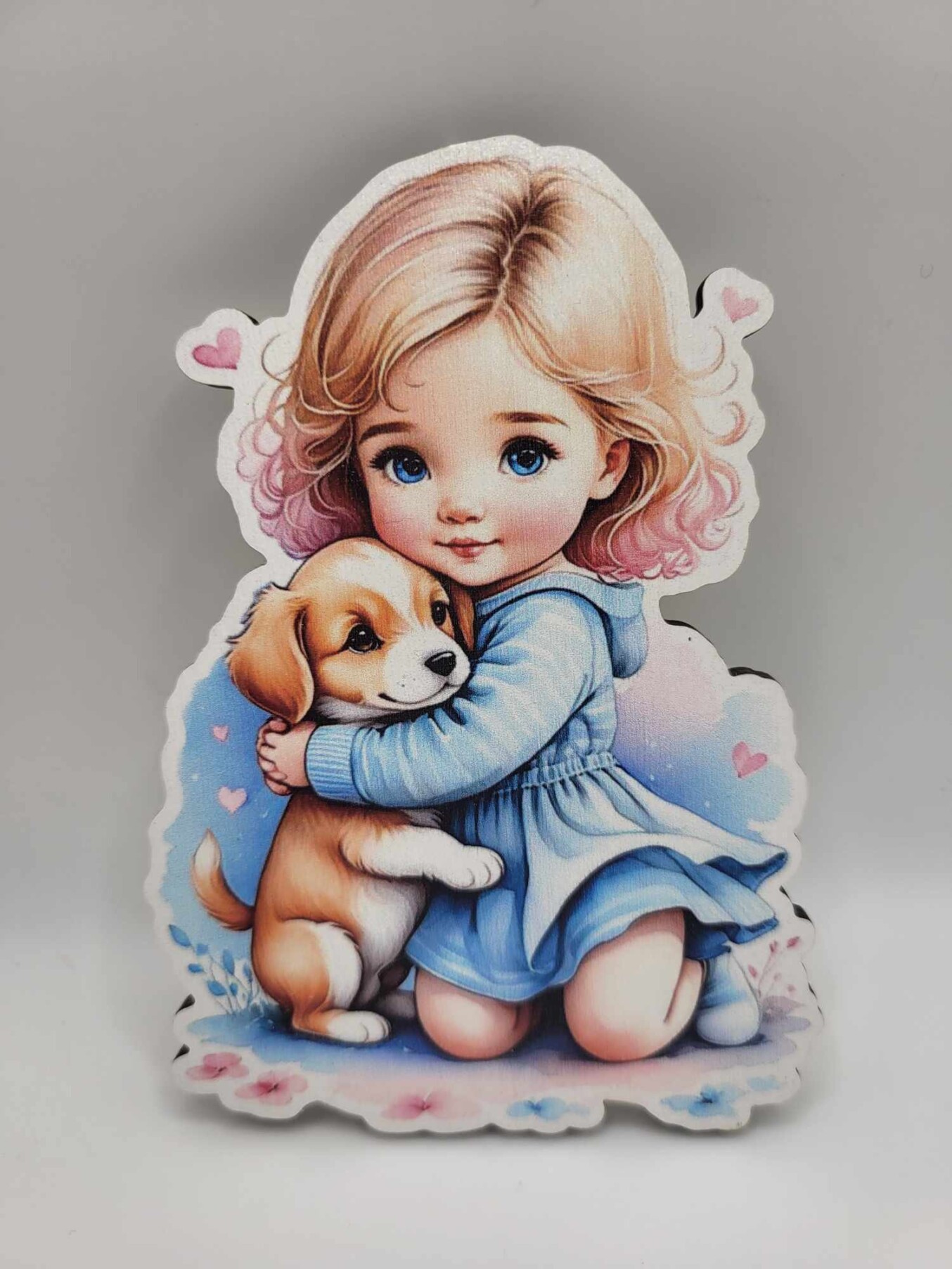 Drevená magnetka – dievčatko so psíkom je nežná a roztomilá dekorácia vyrobená z kvalitnej topoľovej preglejky. Jemný detský motív dievčatka s psíkom pôsobí láskavo a je ideálny pre dievčenské oslavy, detské narodeniny alebo tematické párty so zvieratkami.
