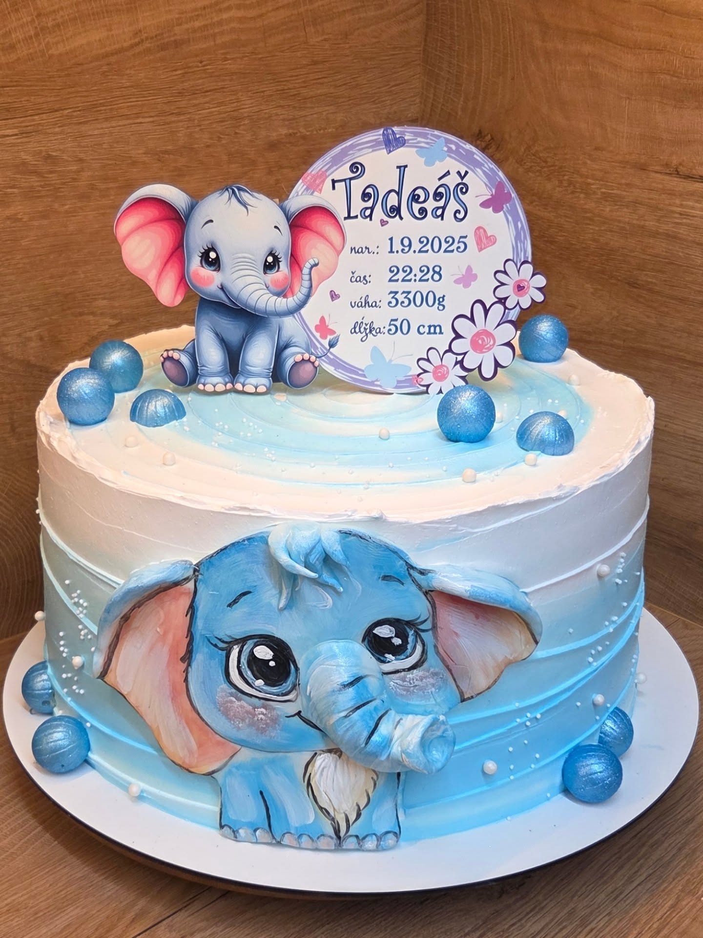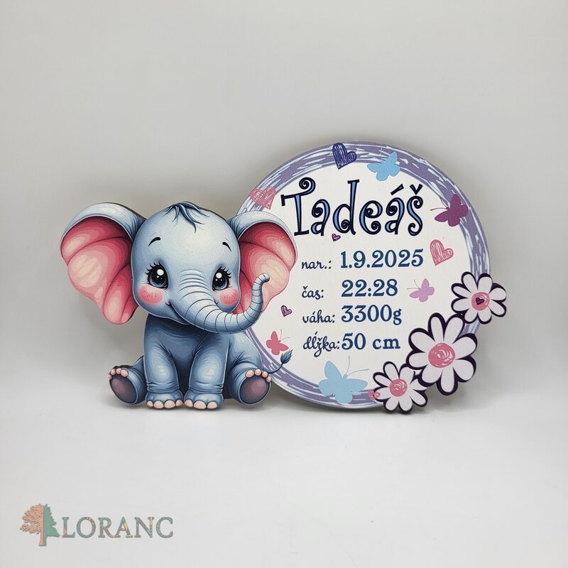 Drevená magnetka s menom a údajmi o narodení – Sloník- krst 04