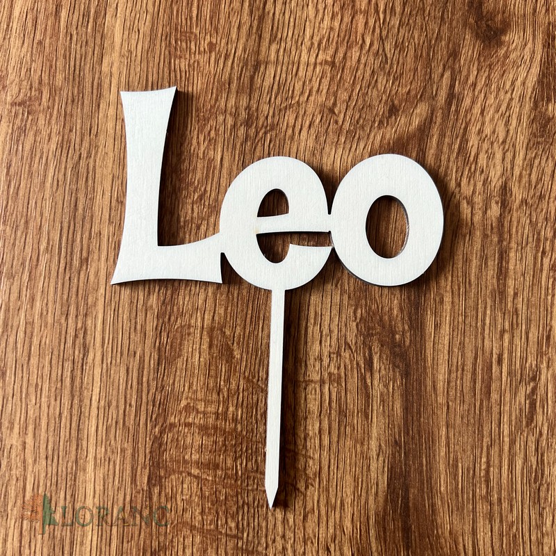 Drevený zápich na tortu s menom Leo 02