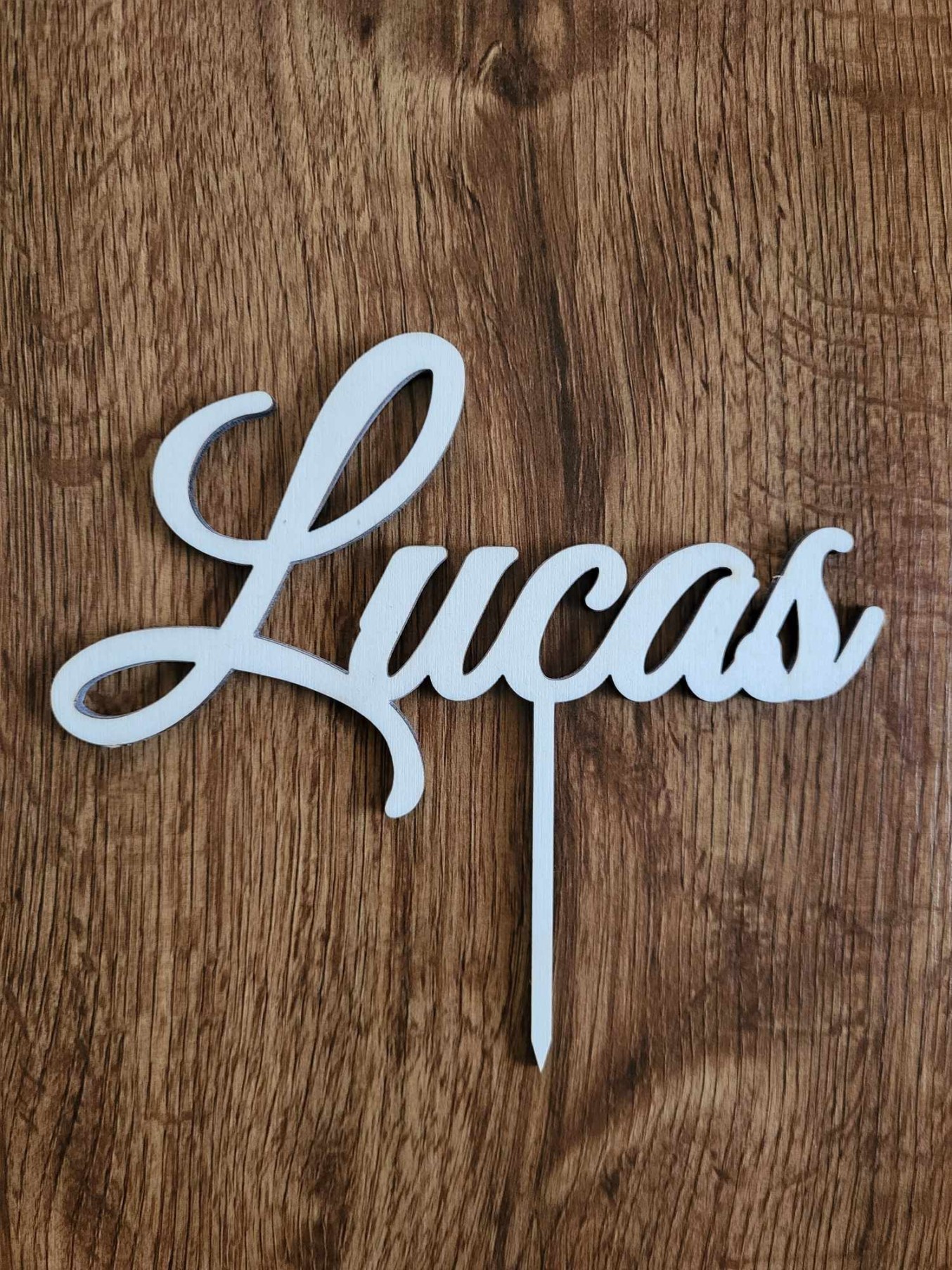 Personalizovaný drevený zápich na tortu s menom podľa želania.