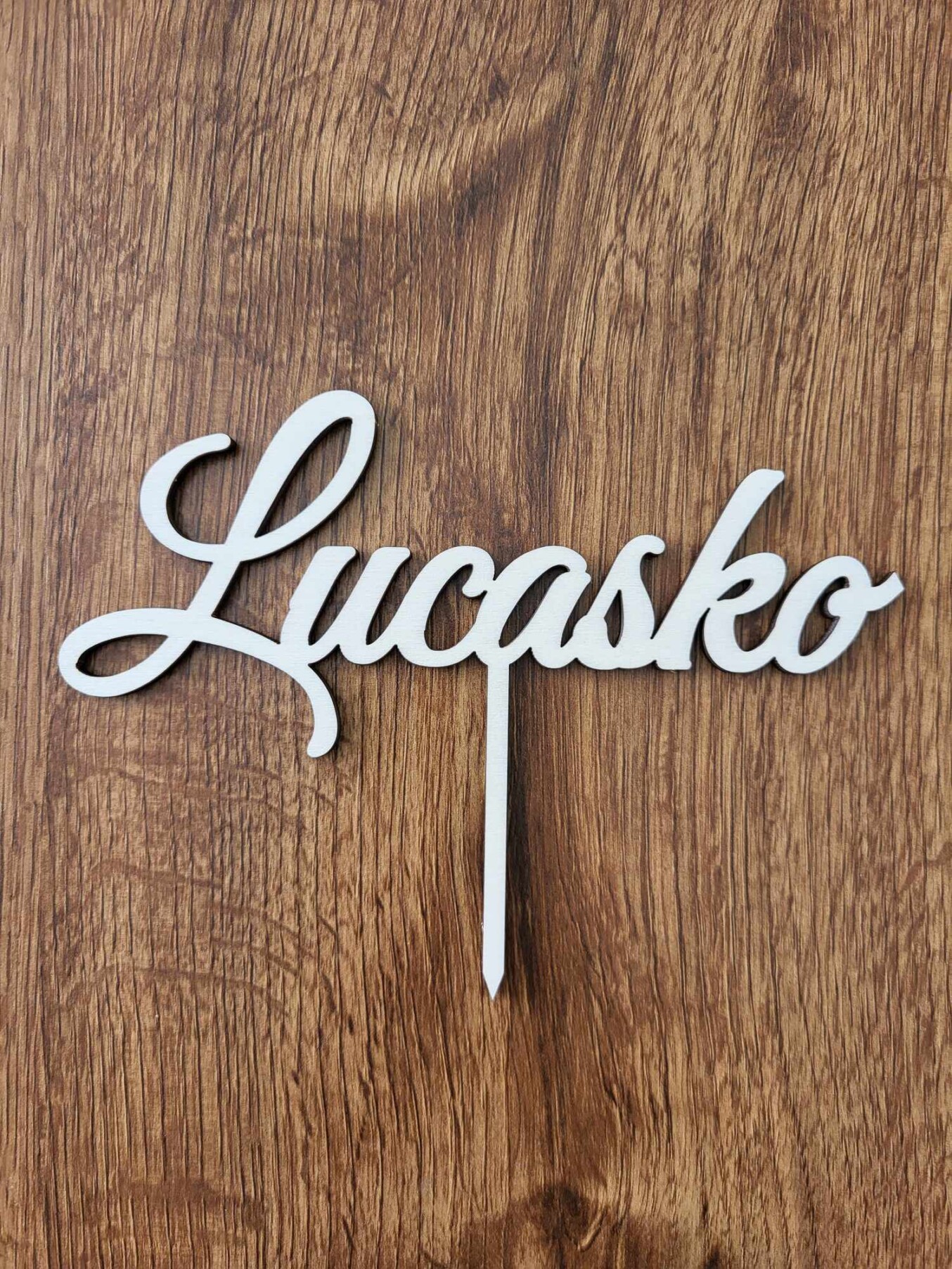 Personalizovaný drevený zápich na tortu s menom podľa želania.