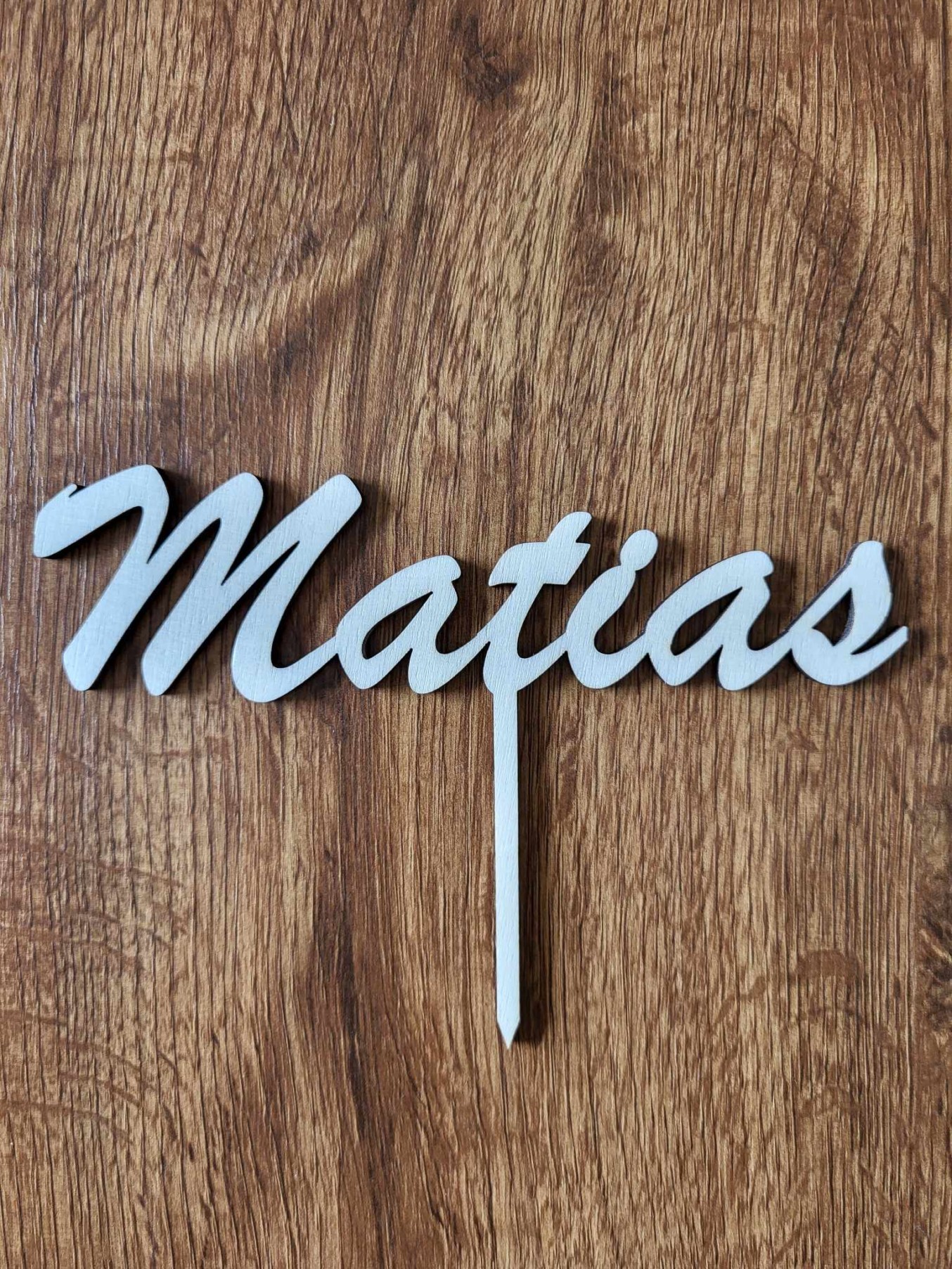 Drevený zápich na tortu s menom Matias