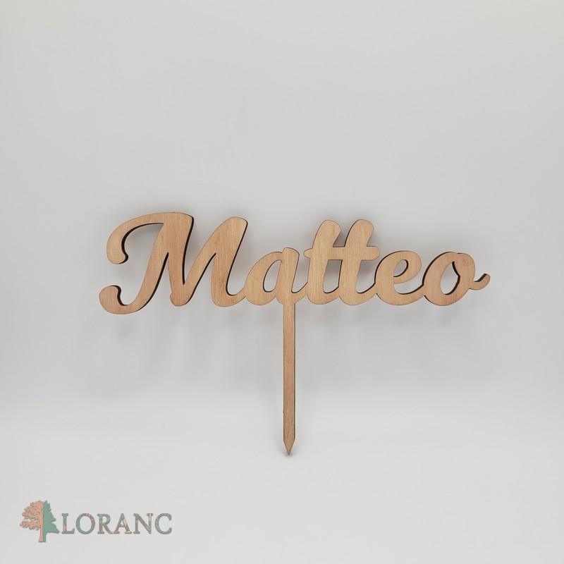 Personalizovaný drevený zápich na tortu s menom podľa želania.