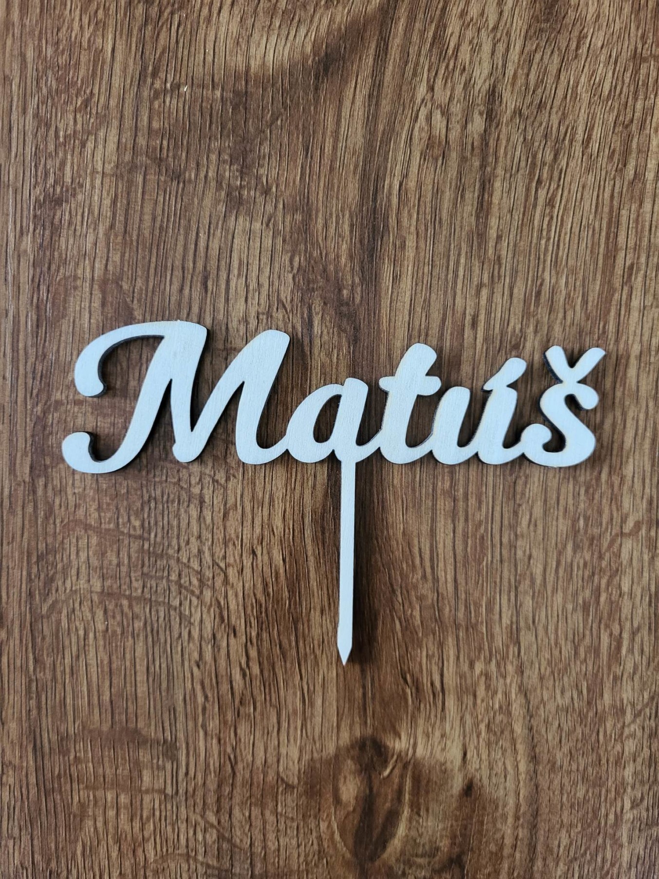 Drevený zápich na tortu s menom Matúš 01