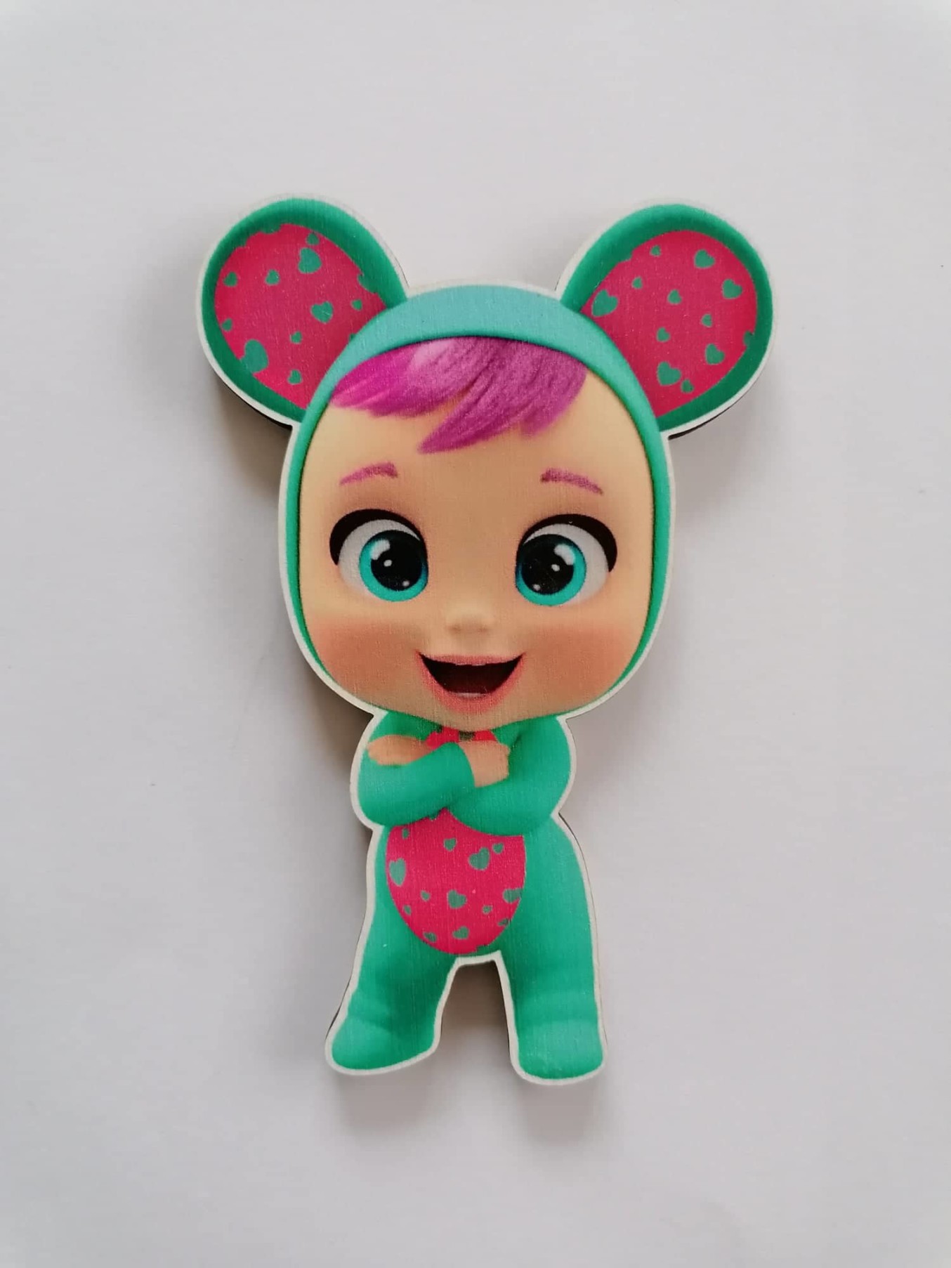 Originálna drevená magnetka s farebnou potlačou. Poteší každé dieťa ako drobná pozornosť,  vhodná ako dar do detského kolektívu alebo ako odmena do rôznych súťaží. Magnetku je možné použiť aj ako zápich na tortu. Stačí, ak na magnetku zo zadnej strany prilepíte špajdľu. Po oslave ostáva magnetka dieťaťu na pamiatku.