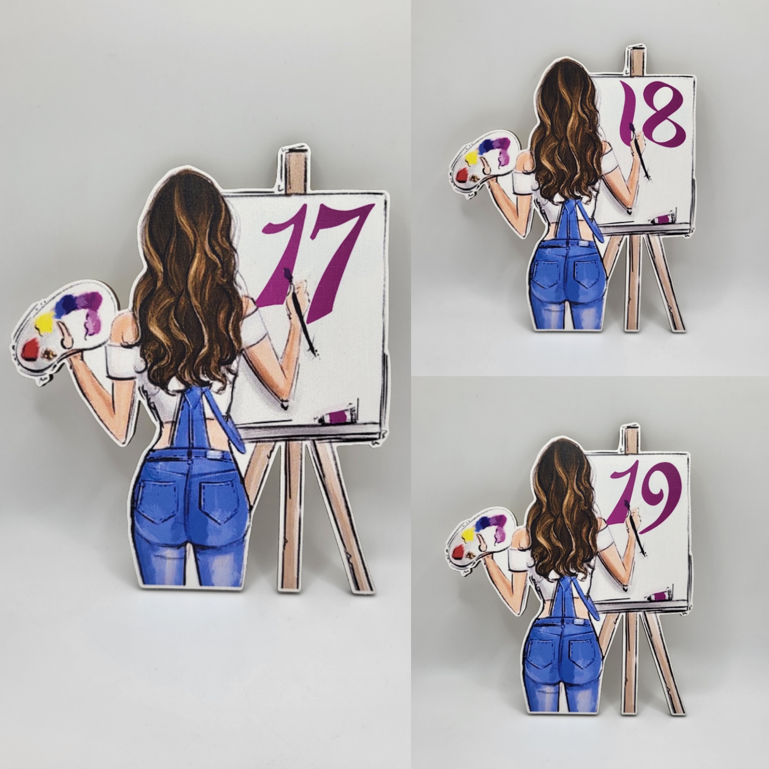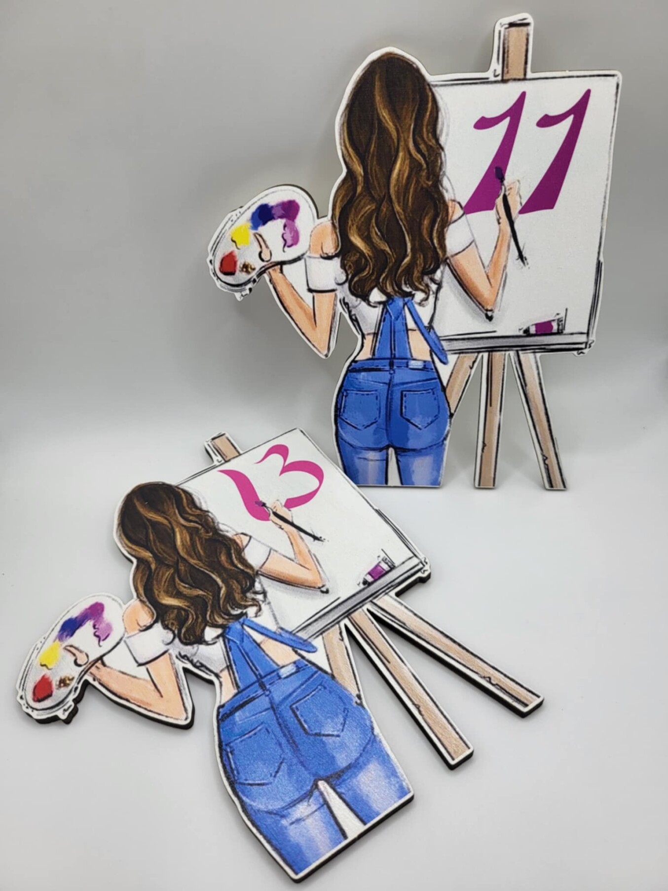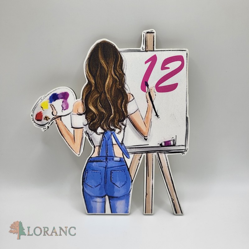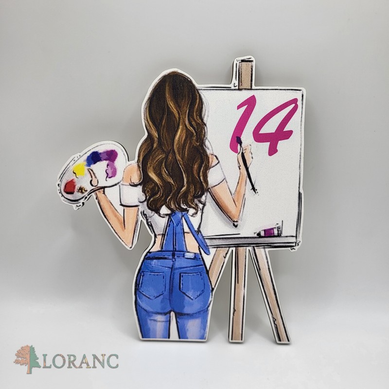 Drevená magnetka – maliarka s číslom 16 je originálna dekorácia vyrobená z kvalitnej topoľovej preglejky. Jemná ilustrácia dievčaťa pri maliarskom stojane s číslom 16 je ideálna ako dekorácia na tortu k 16. narodeninám, ale aj ako milá pamiatka po oslave.