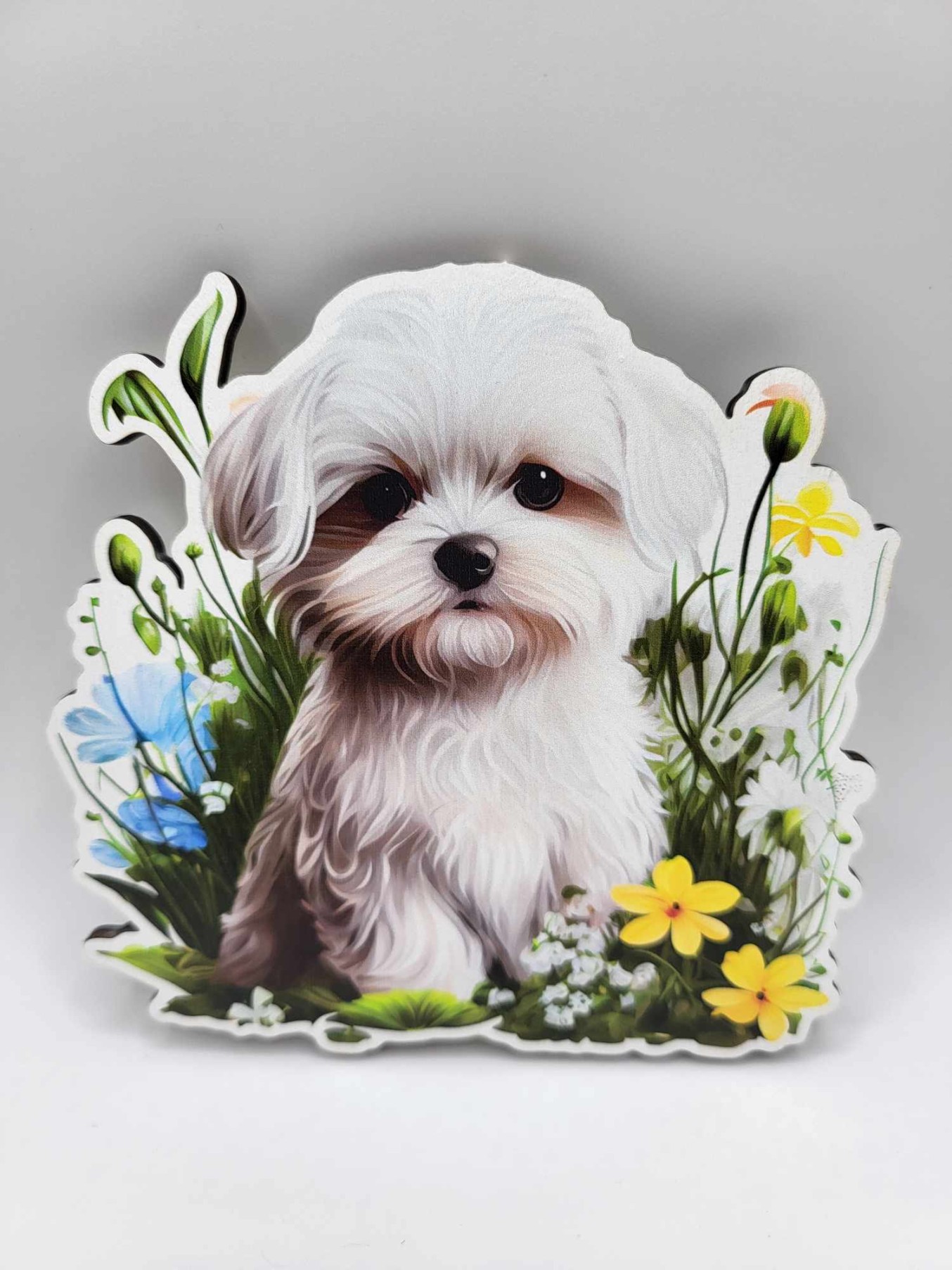 Jemná a roztomilá drevená magnetka s motívom psíka maltézák je ideálnym doplnkom na detské aj tematické torty. Vhodná je ako dekorácia na tortu, na čelo torty a po jednoduchom nalepení špajgle zo zadnej strany ju môžete použiť aj ako zápich na tortu.